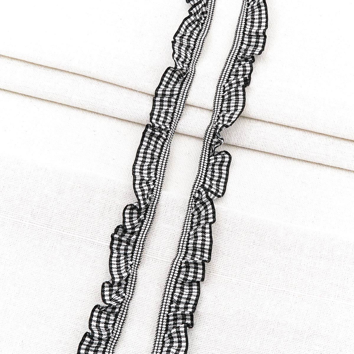 Тесьма-рюш эластичная 20 мм / 20 метров, односторонняя в клетку, п/э, цв.чёрн., 26064