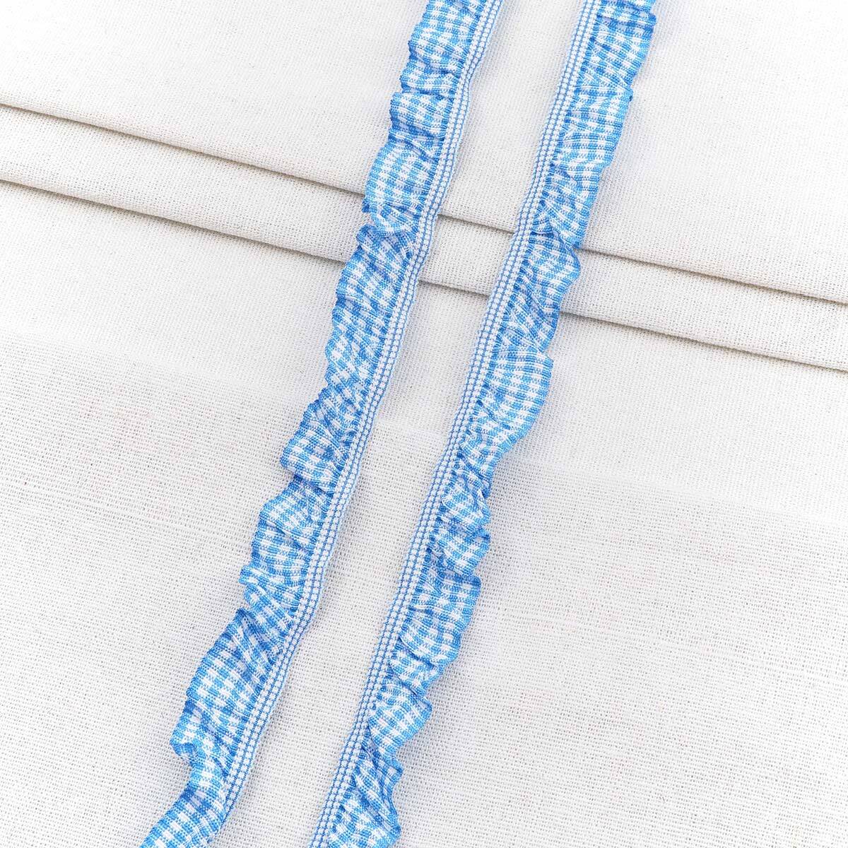 Тесьма-рюш эластичная 20 мм / 20 метров, односторонняя в клетку, п/э, цв.гол., 26064