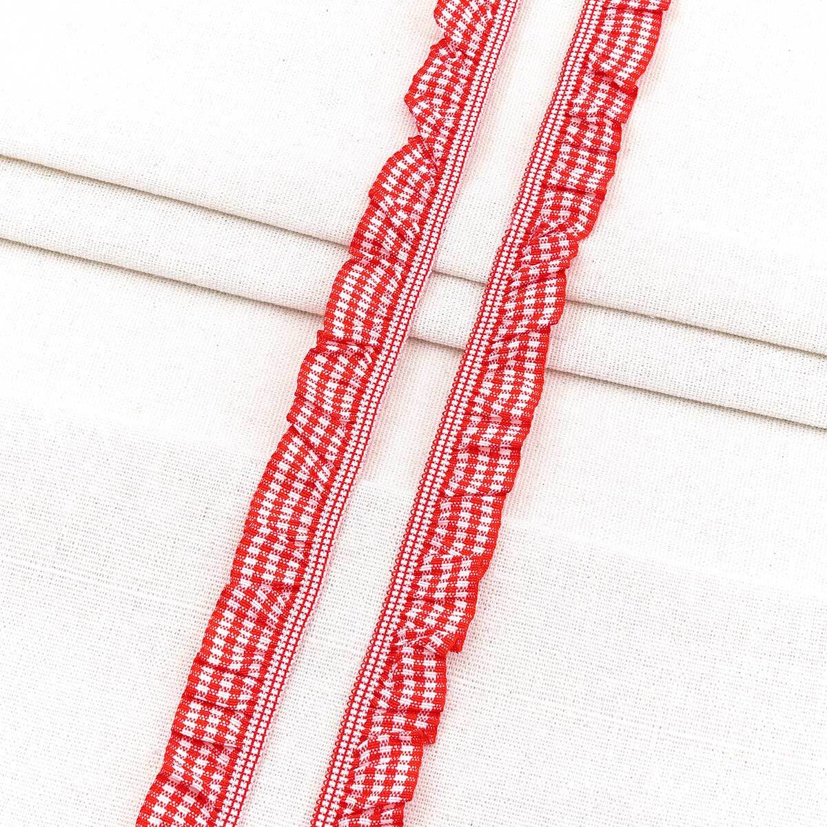 Тесьма-рюш эластичная 20 мм / 20 метров, односторонняя в клетку, п/э, цв.красн., 26064