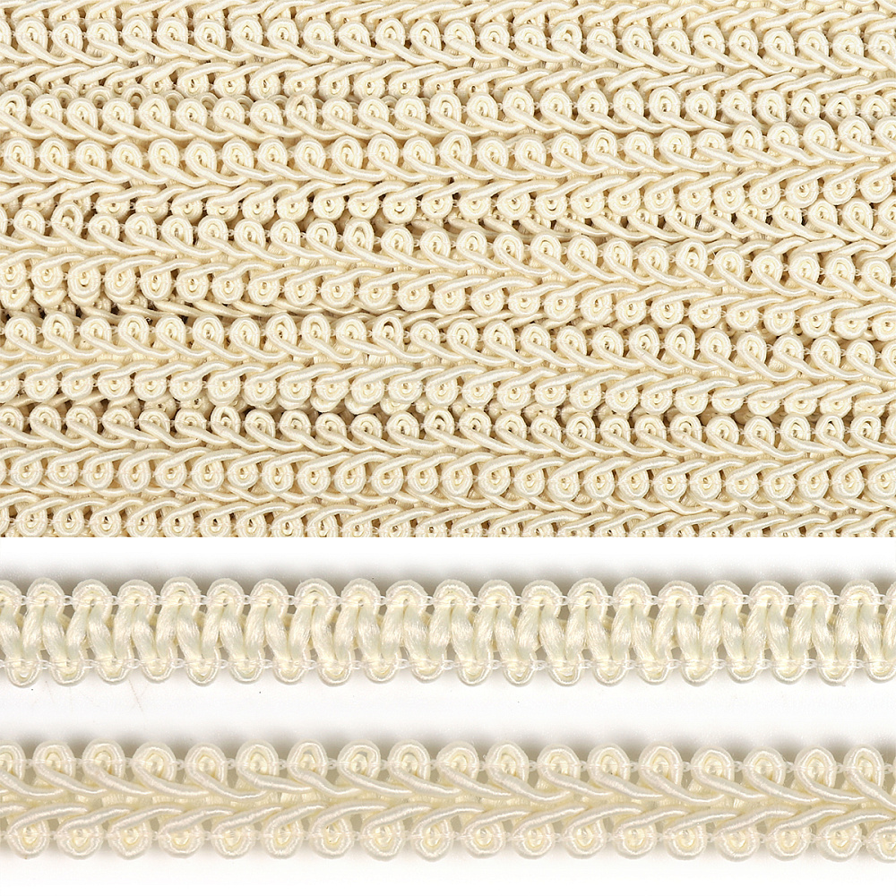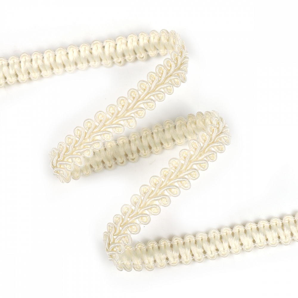Декоративная плетеная тесьма 'Шанель' используется для отделки женской и детской одежды. Подходит для украшения портьер, мягкой мебели и чехлов, всевозможных наволочек и подушек, сумок, косметичек. Такую тесьму можно использовать при создании бижутерии, поясов. Тесьма – важная деталь жакета, она задает стиль. Шанель нашла безупречный баланс между рыхлостью твида и характерным рисунком витой тесьмы. Петельная тесьма всегда пластична, идеально выкладывается по горловине и необыкновенно комфортна.Качественный материал, высокая устойчивость к стирке и деформации без изменения своих качеств, длительность в применении.