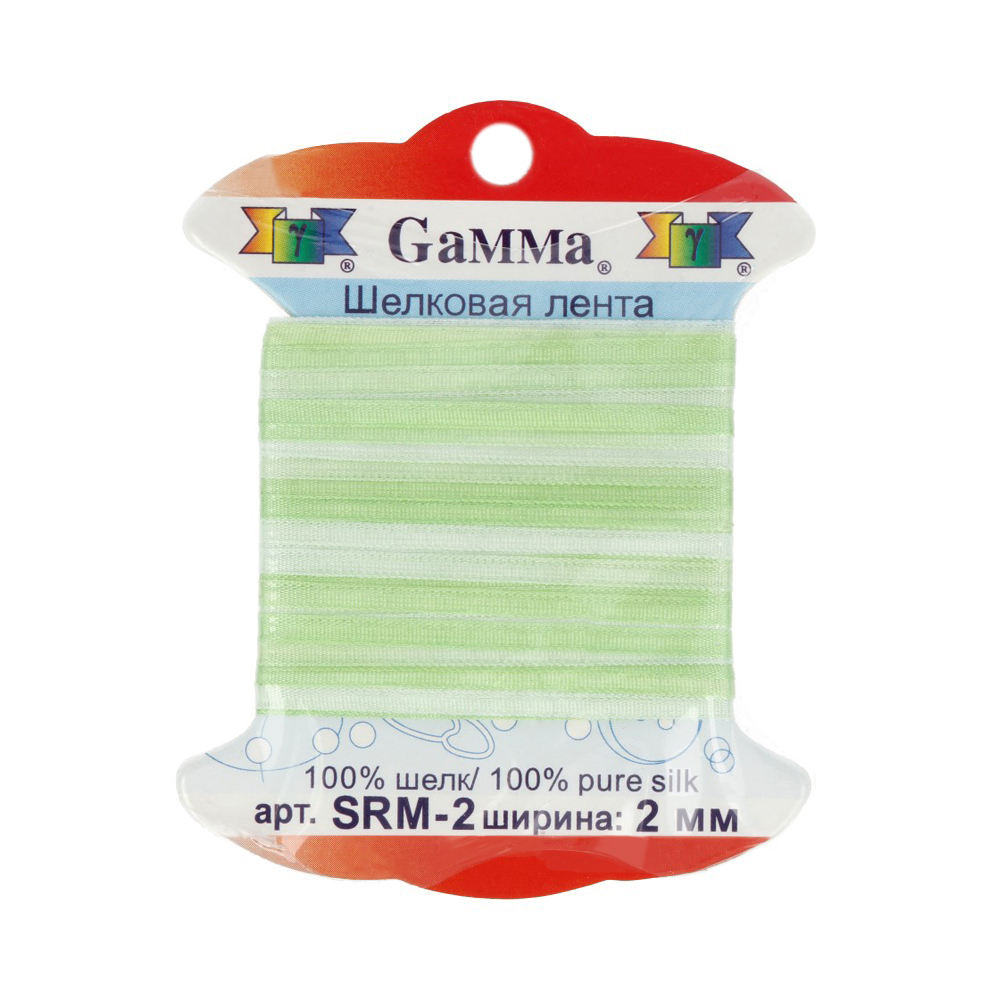 Лента (тесьма) шелковая 2.0 мм / 9.1±0.5 метров, M032 бл.салатовый/салатовый, Gamma SRM-2