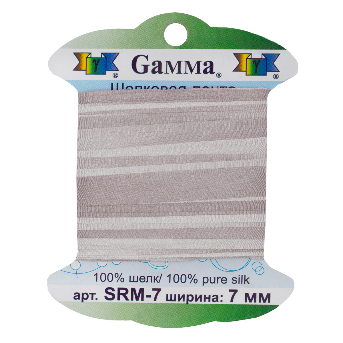 Лента (тесьма) шелковая 7.0 мм / 9.1±0.5 метров, M027 бежевый/св.св.бежевый, Gamma SRM-7