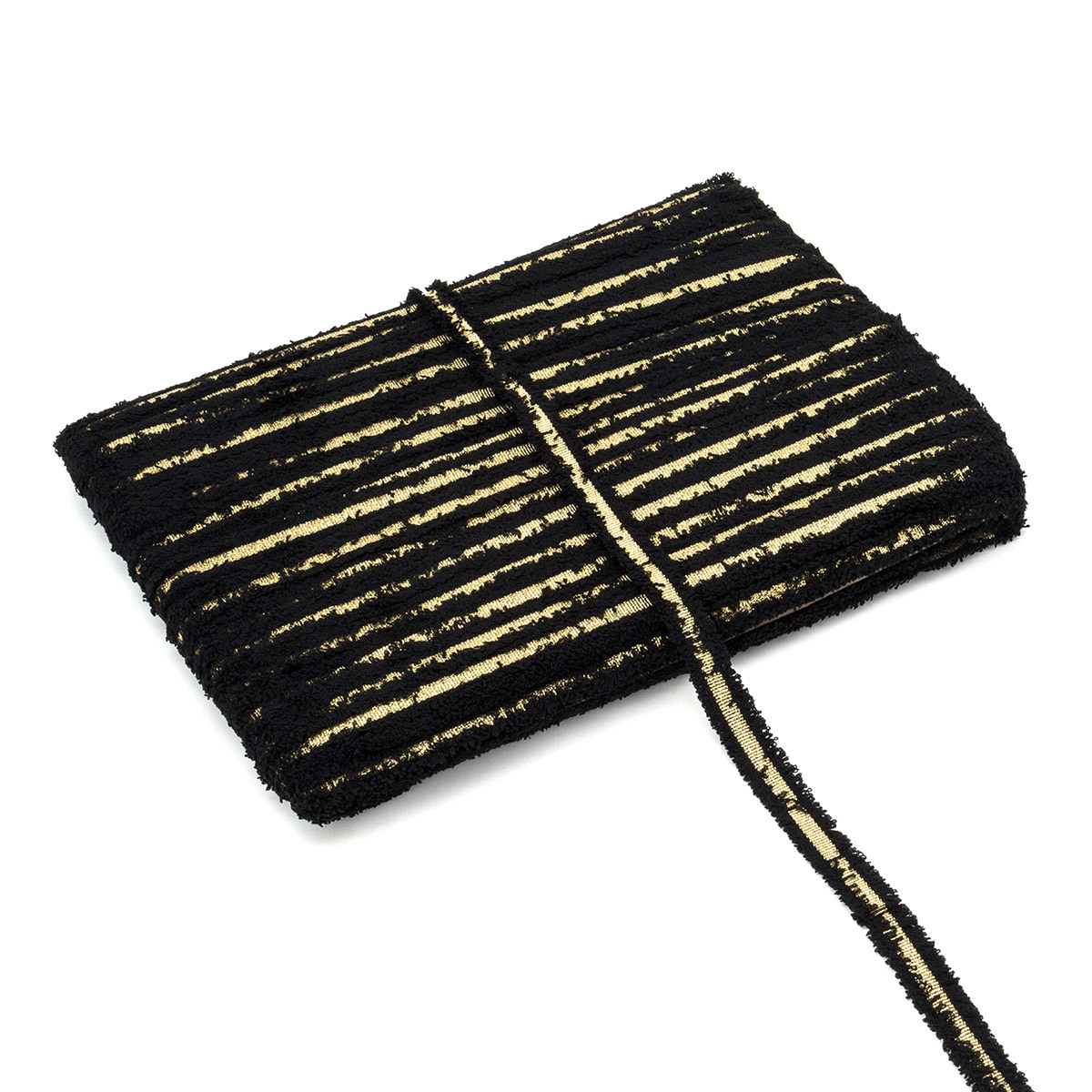 Тесьма отделочная твидовая 15 мм / 82.29 метра, с люрексом, черный/золото, 3Al284