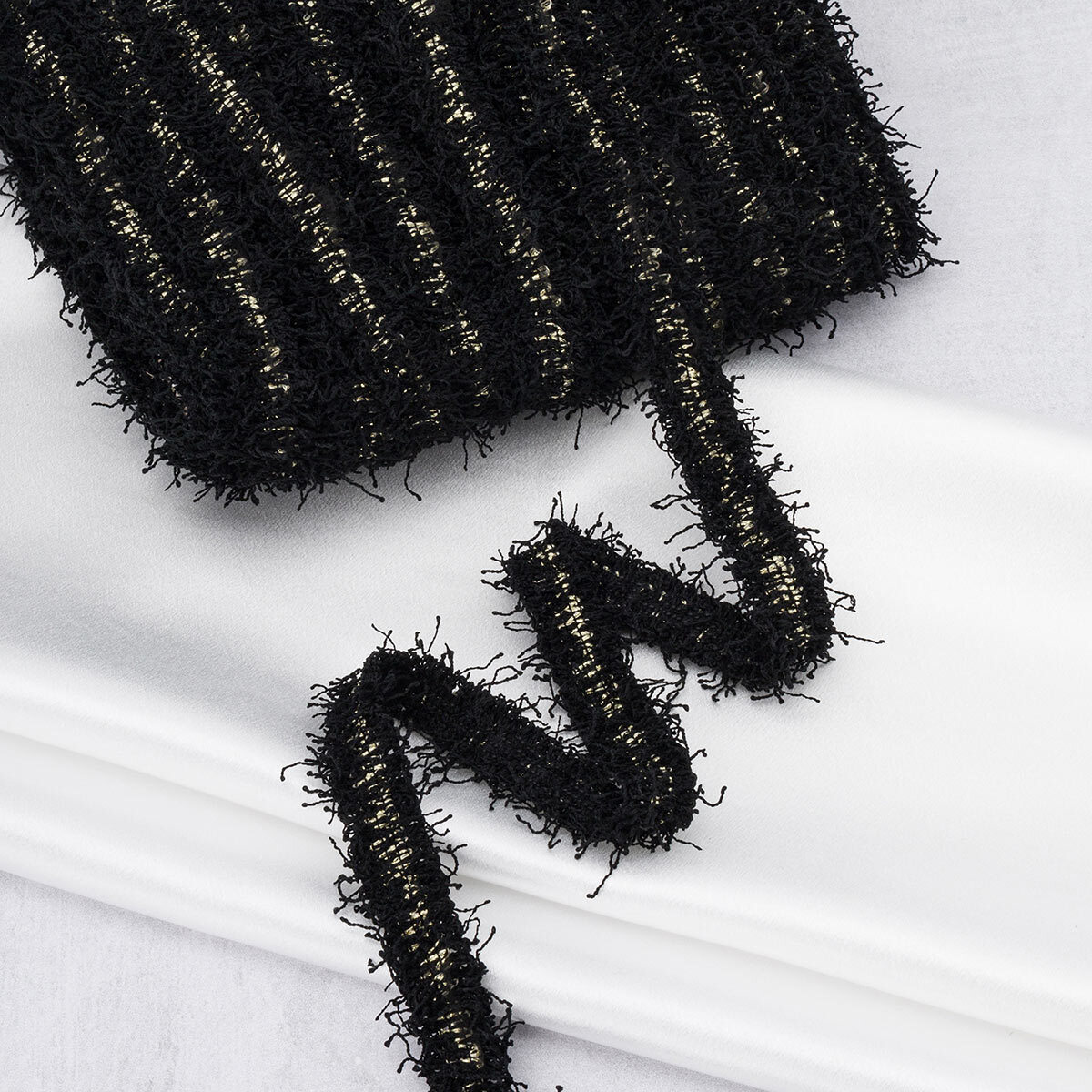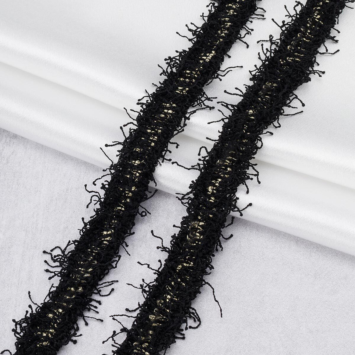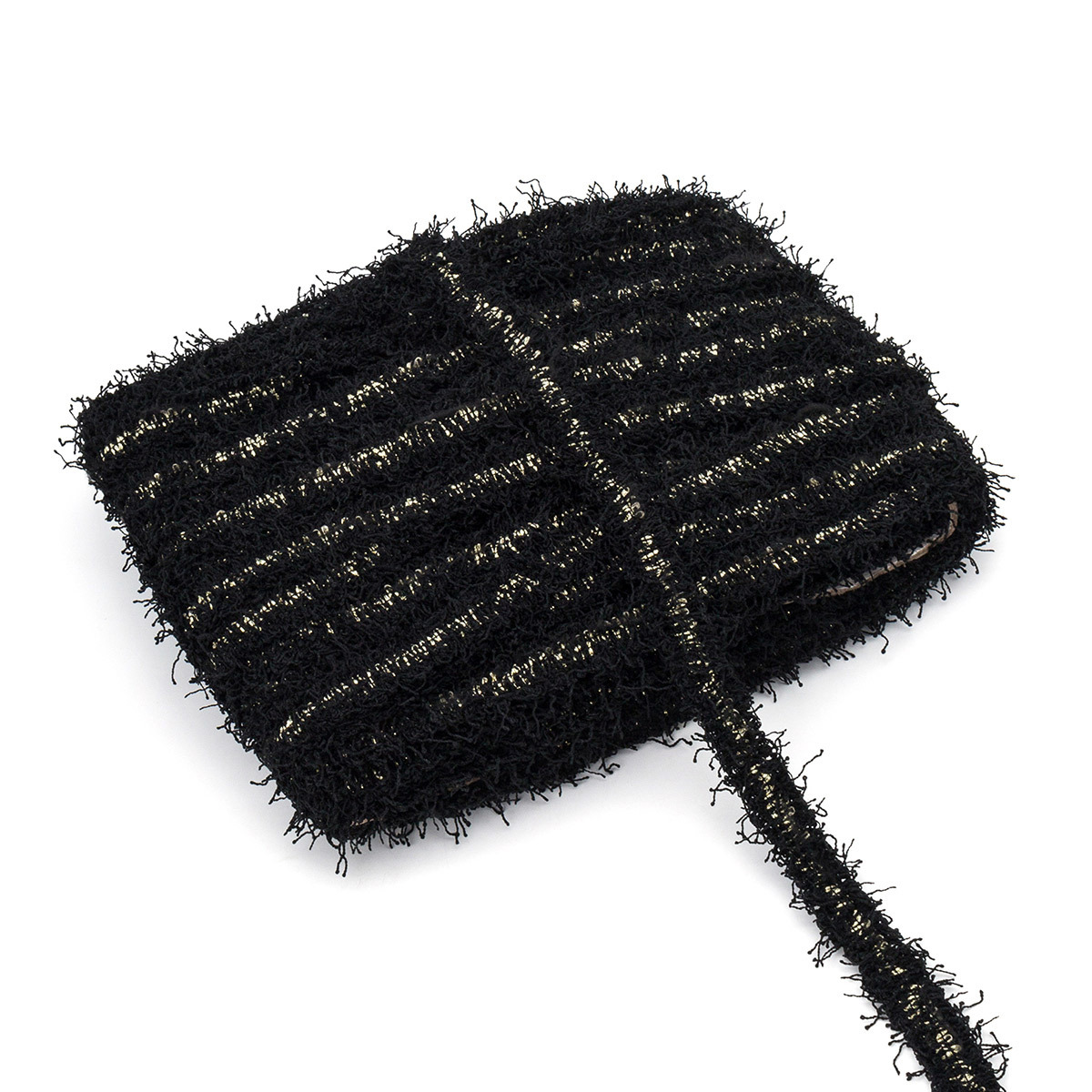 Тесьма отделочная твидовая 25 мм / 41.14 метра, с люрексом, черный/золото, 3Al280