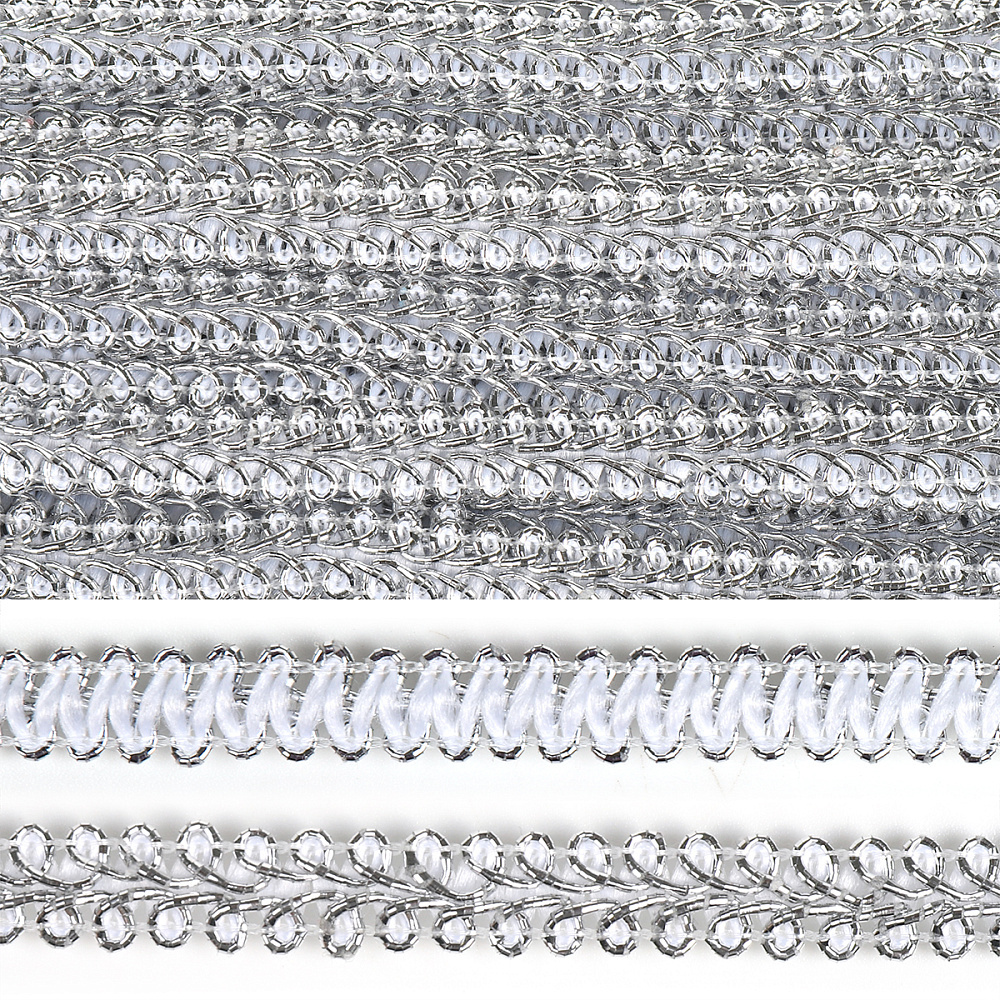 Тесьма в стиле шанель плетеная 12 мм 0384-0016 серебро уп. 18.28м