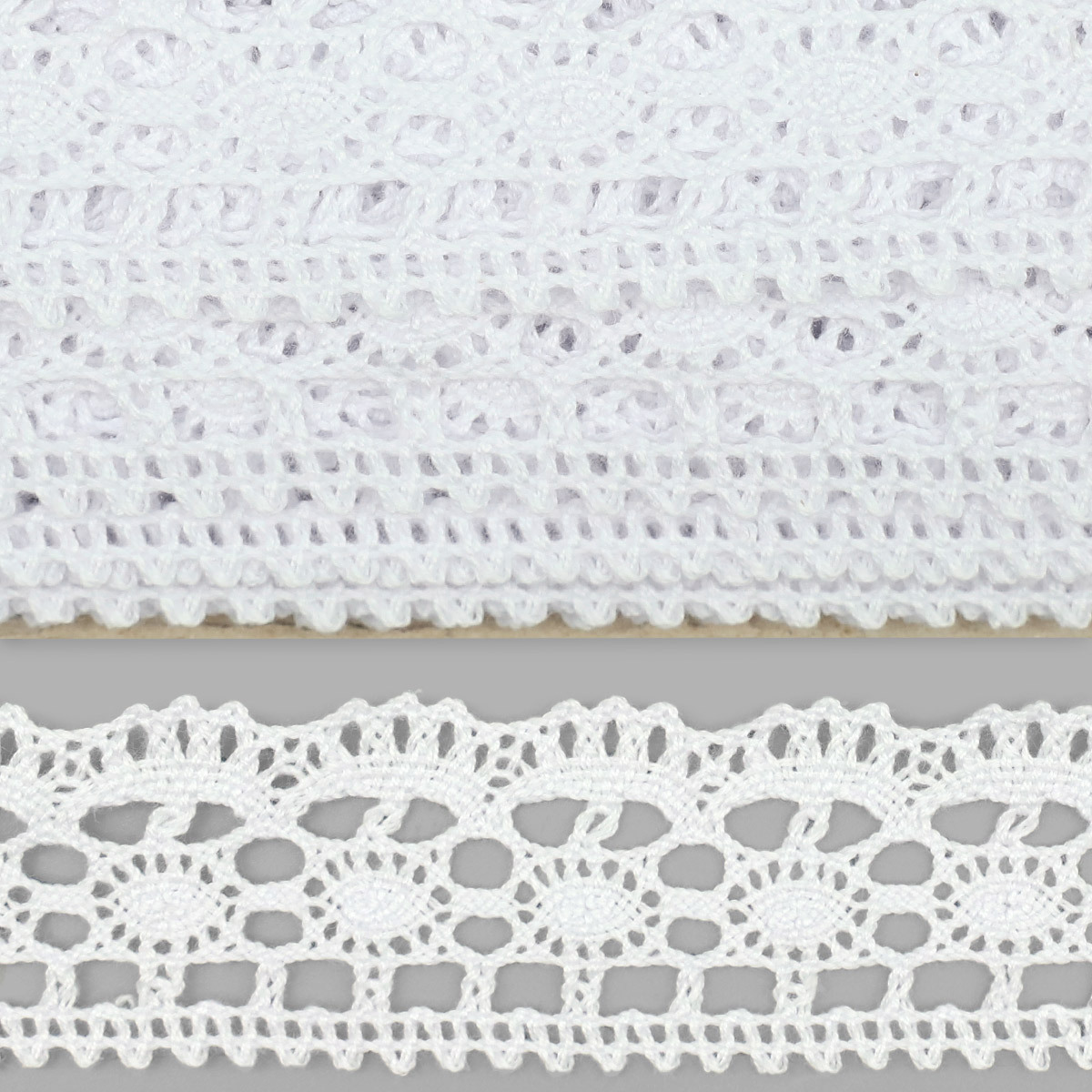 Кружево вязаное (тесьма) 35 мм / 25 м, бел, одностороннее, 545129