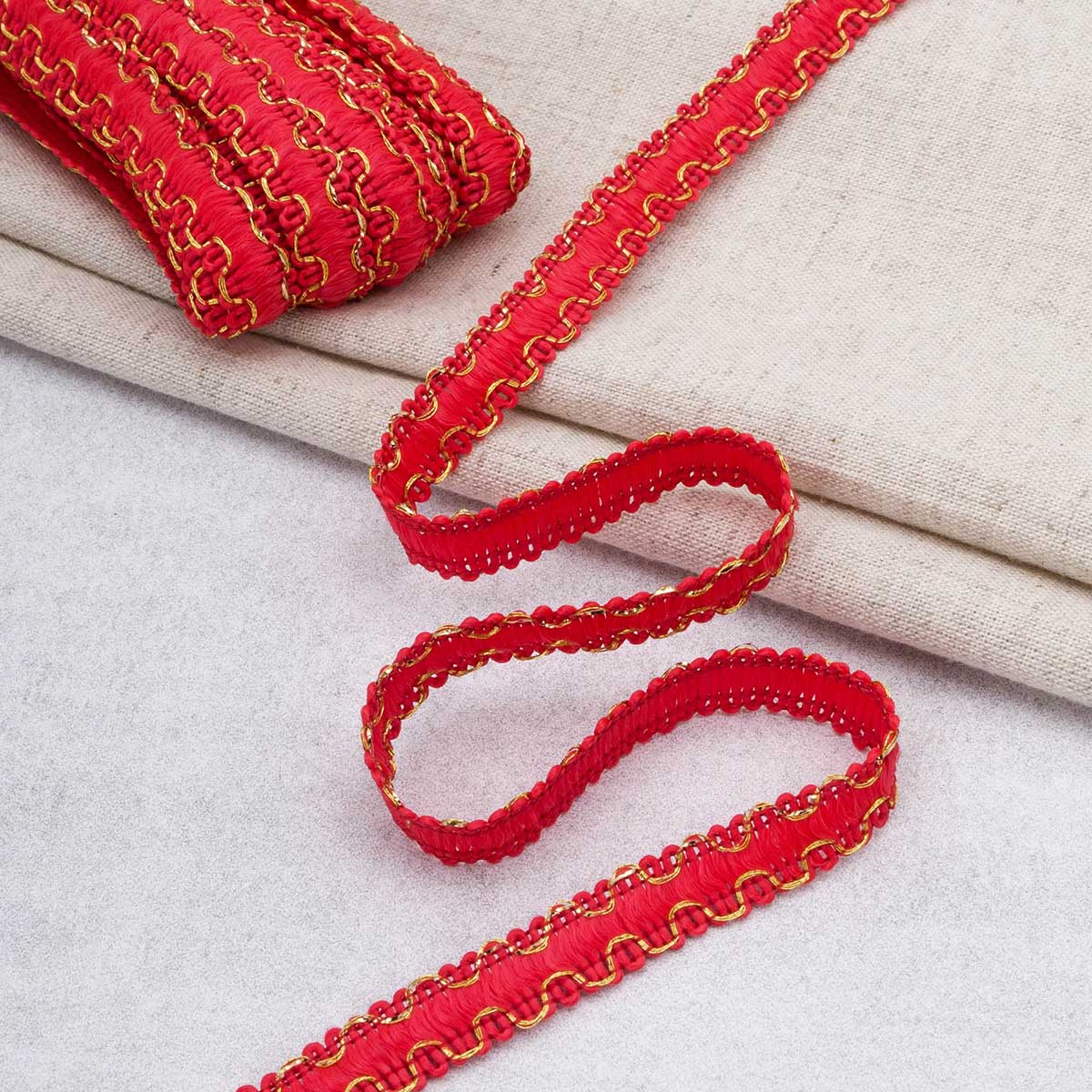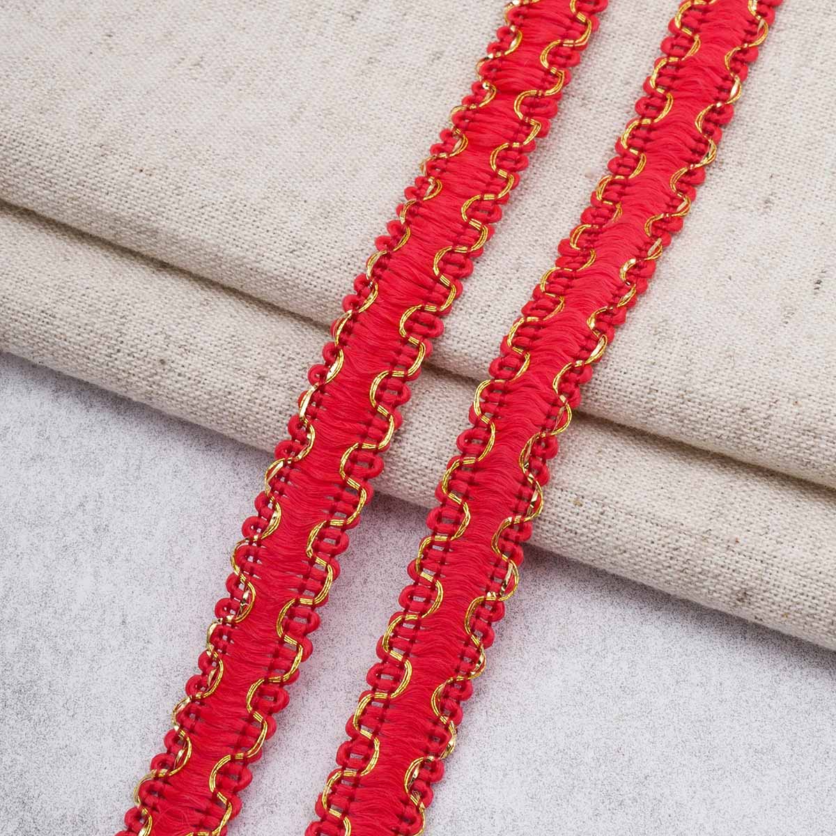 Тесьма отделочная вязаная 10 мм / 10 метров, рис 9254, красный/золото, С3729г17/1