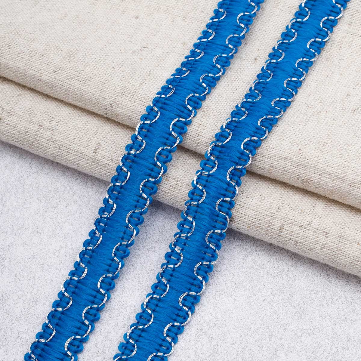 Тесьма отделочная вязаная 10 мм / 10 метров, рис 9254, синий/серебро, С3729г17/1