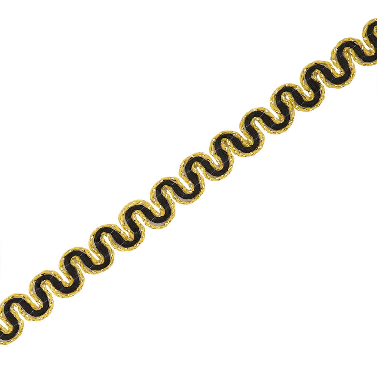 Тесьма отделочная змейка 10 мм / 10 метров, вязаная, рис.9404, черный/золото, С3794Г17