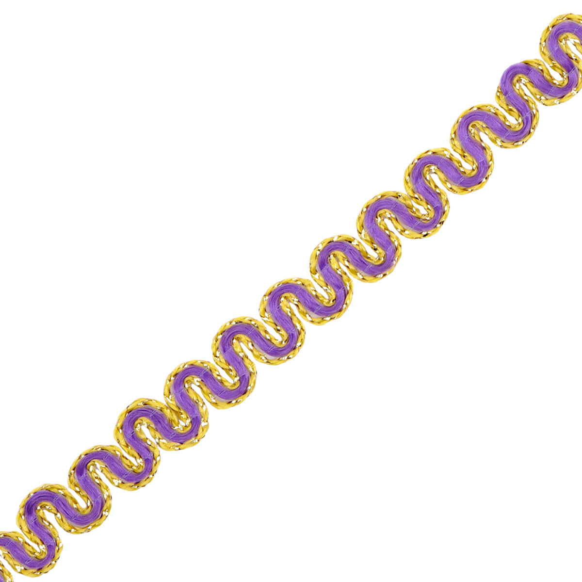 Тесьма отделочная змейка 10 мм / 10 метров, вязаная, рис.9404, фиолетовый/золото, С3794Г17