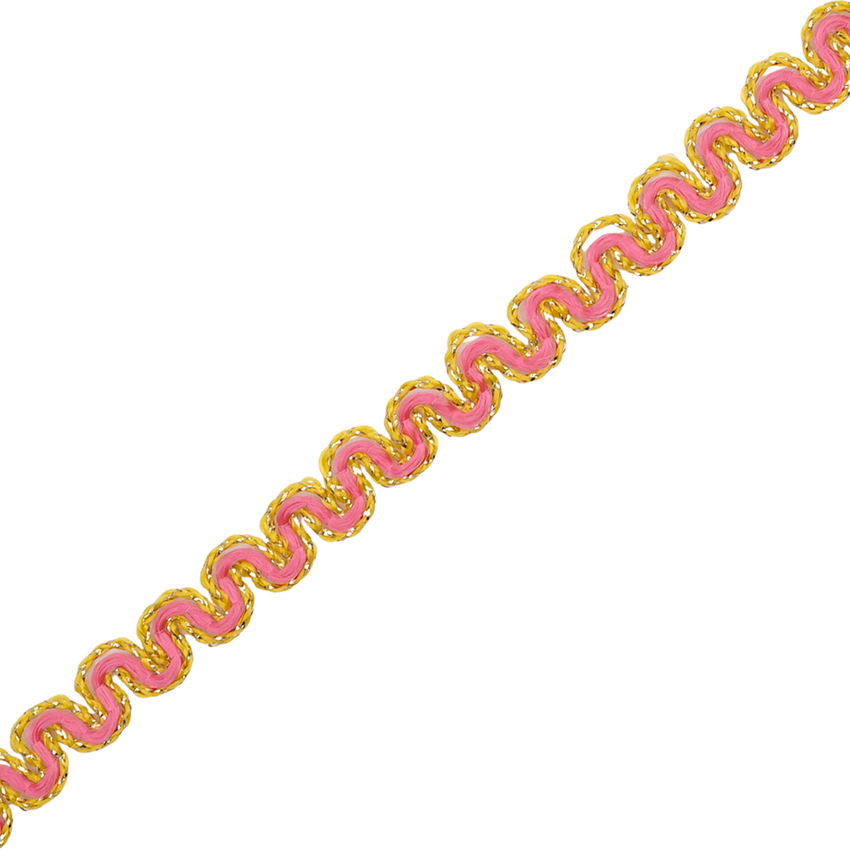 Тесьма отделочная змейка 10 мм / 10 метров, вязаная, рис.9404, розовый/золото, С3794Г17