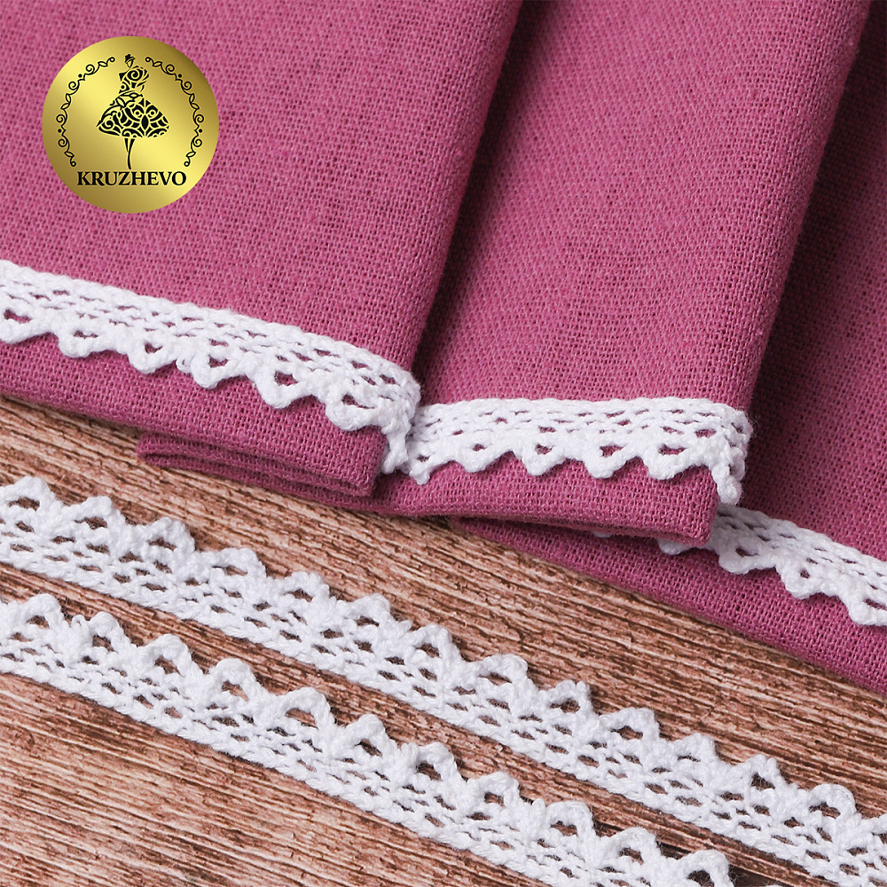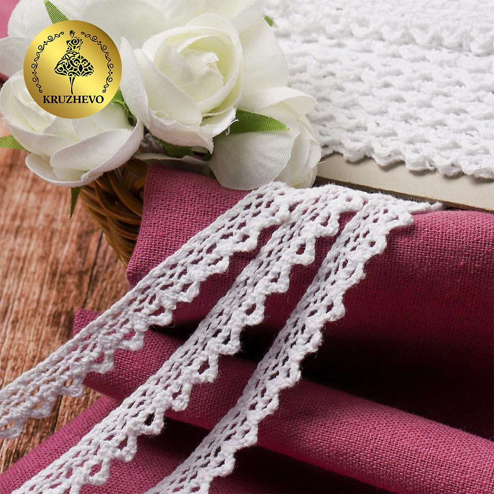 Красивое вязаное кружево из хлопковых нитей очень качественное, мягкое, приятное на ощупь. Украсит любое изделие, сделав его изысканным, утончённым. Широкая сфера использования – от обычного пошива одежды до создания аксессуаров.