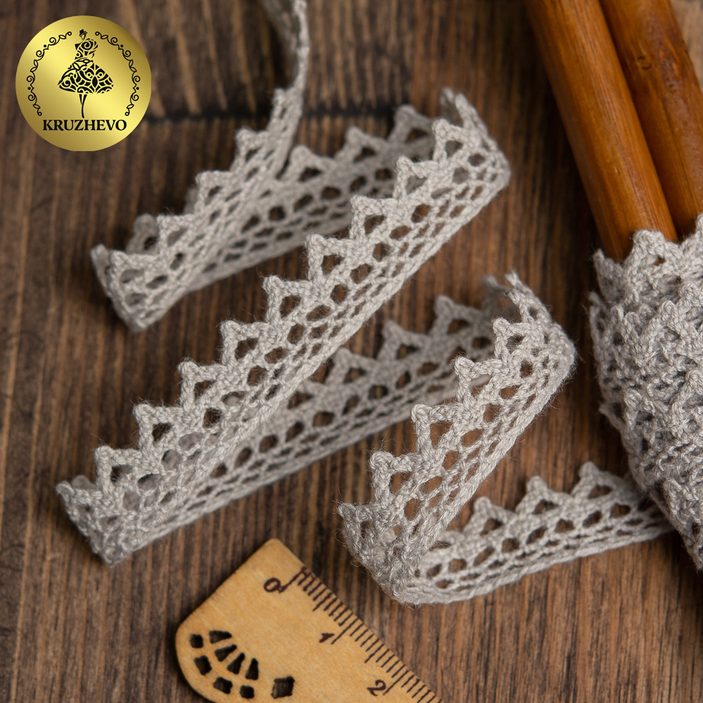 Кружево вязаное (тесьма) 10 мм / 10 метров, диз. 946, цв.22 серый лен, Kruzhevo