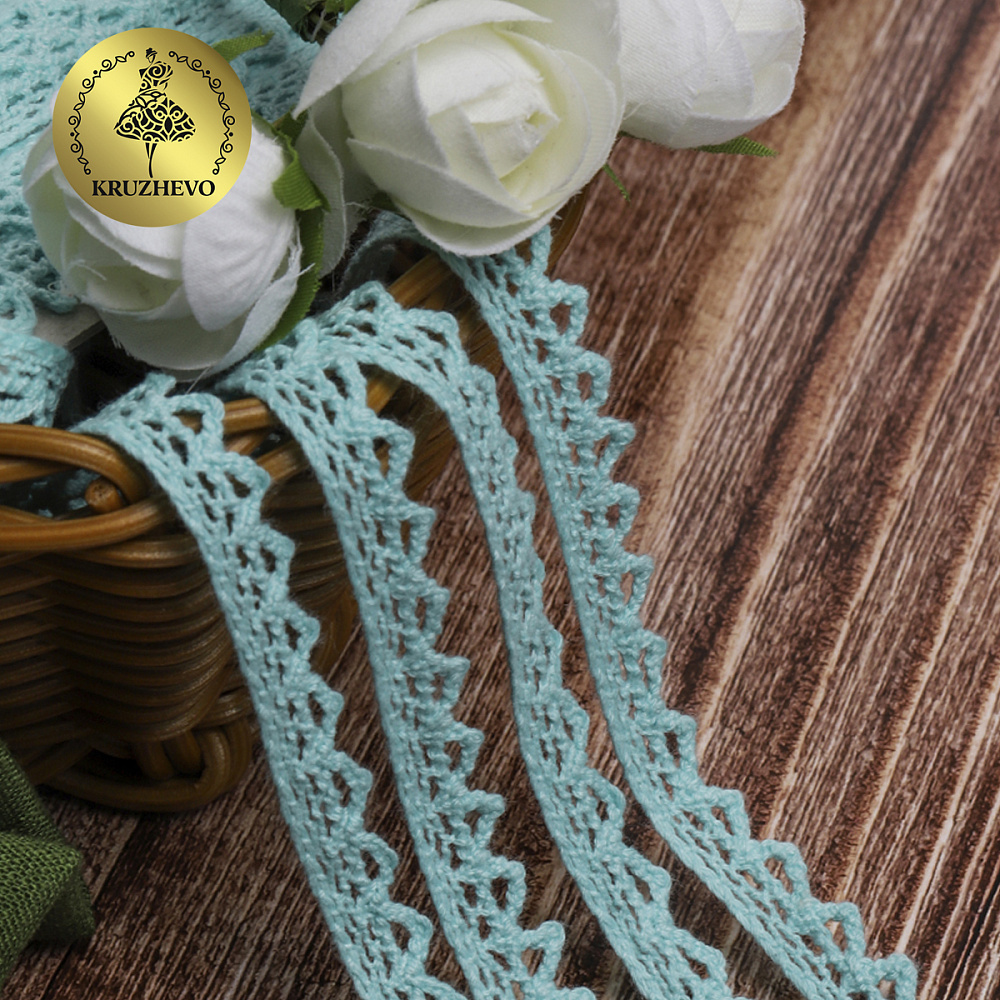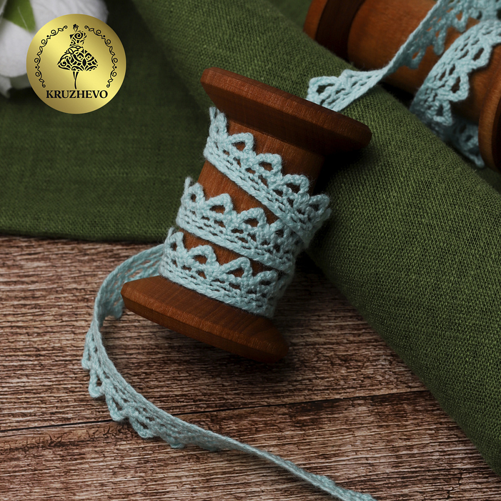 Кружево вязаное (тесьма) 10 мм / 10 метров, диз. 292, цв.24 мята уп. 10 м, Kruzhevo