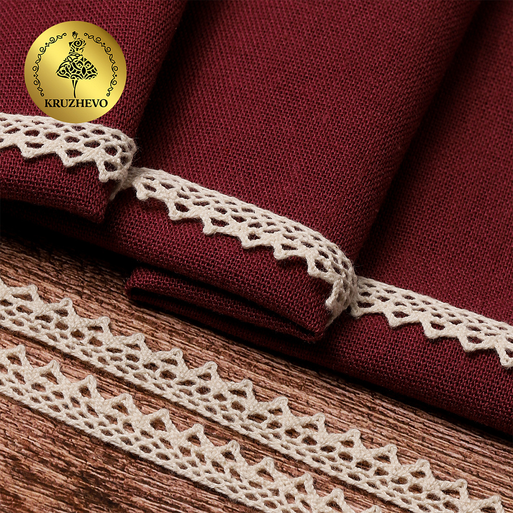 Вязаное хлопковое кружево с разнообразными рисунками. Богатая цветовая гамма и различная ширина кружева. Широкая сфера использования - от обычного пошива одежды до создания аксессуаров.