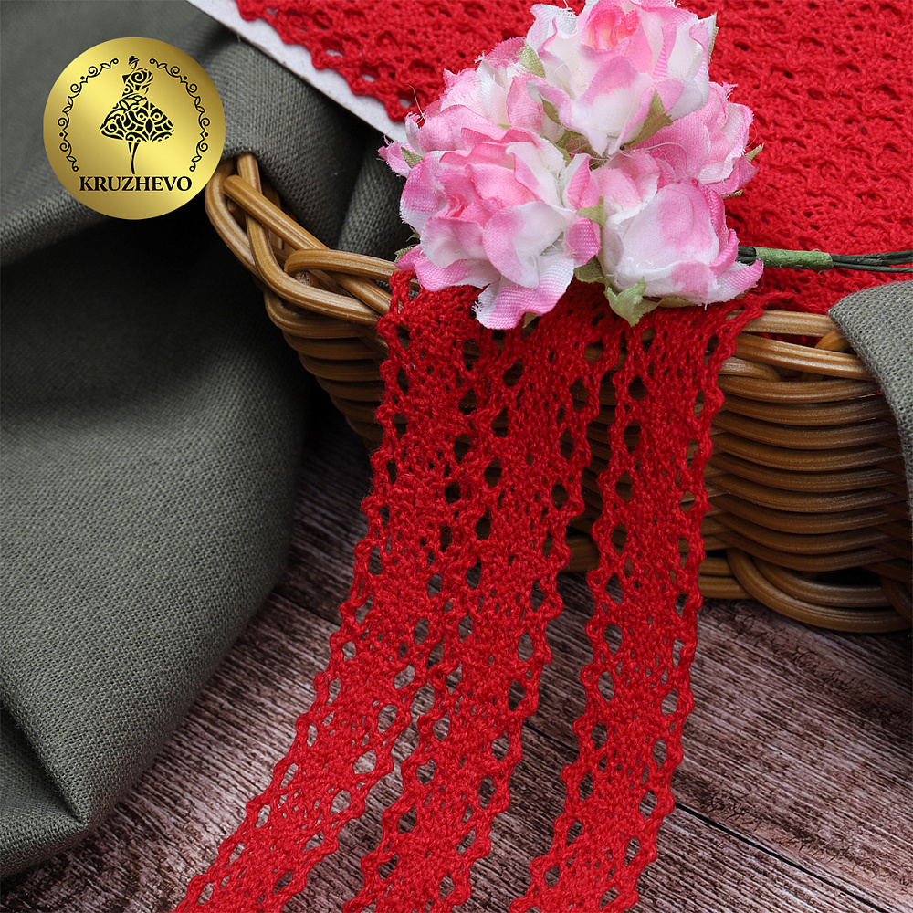 Кружево вязаное (тесьма) 20 мм / 10 метров, 6307-1 цв.31 красный, 10 м, Kruzhevo