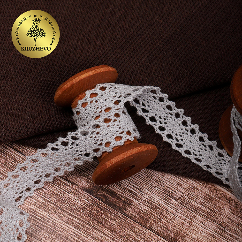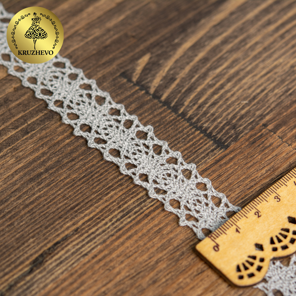 Кружево вязаное (тесьма) 20 мм / 10 метров, цв.25 св.серый уп. 10 м, Kruzhevo