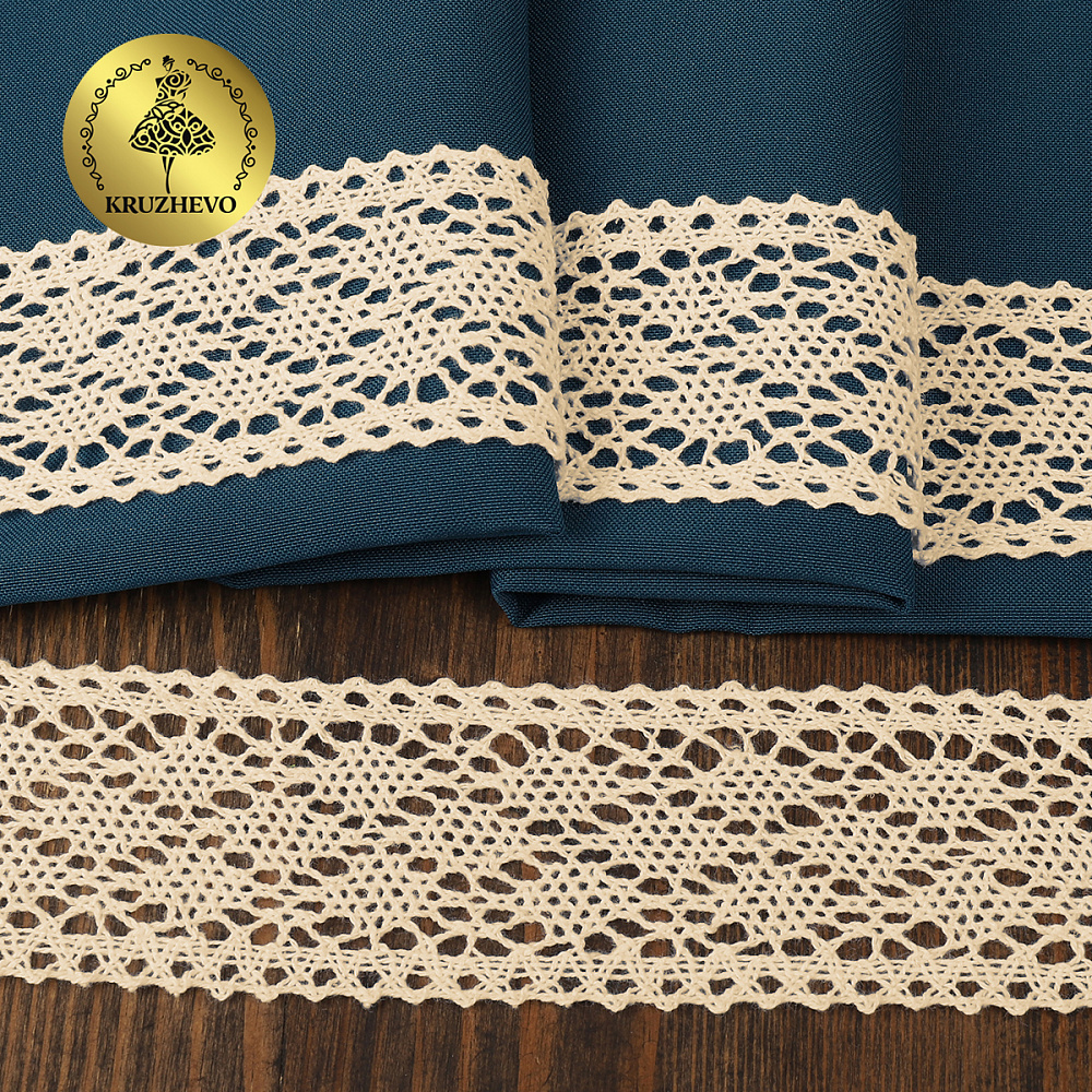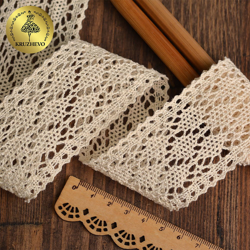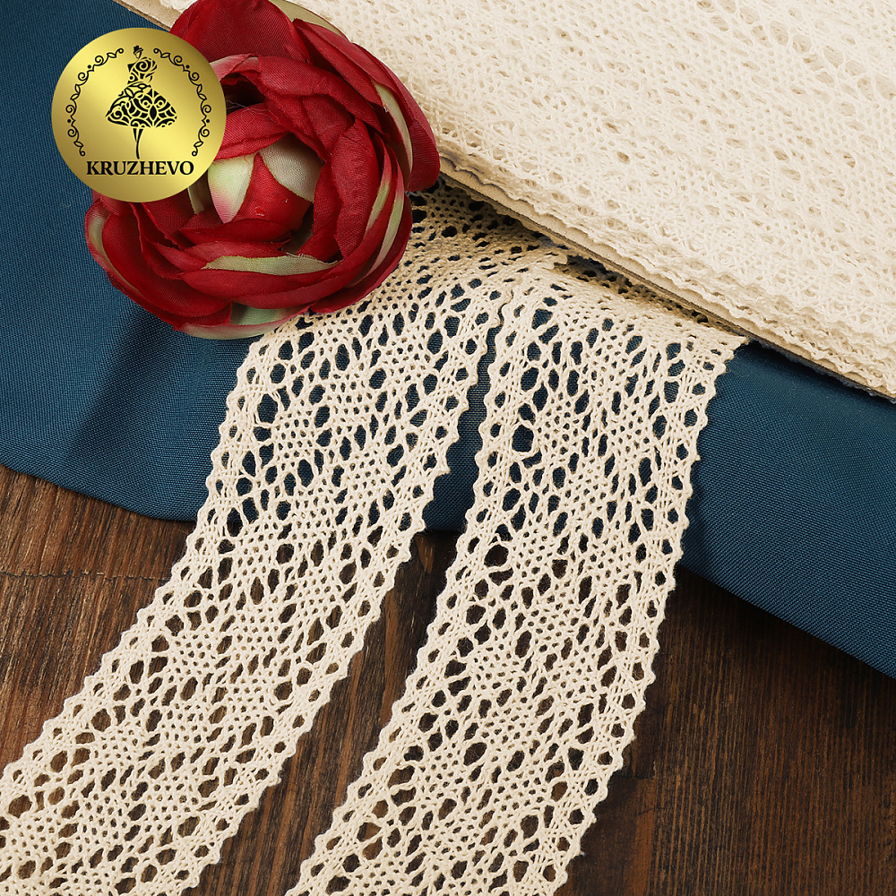 Вязаное, хлопковое кружево с разнообразными рисунками. Богатая цветовая гамма и различная ширина кружева. Широкая сфера использования – от обычного пошива одежды до создания аксессуаров.