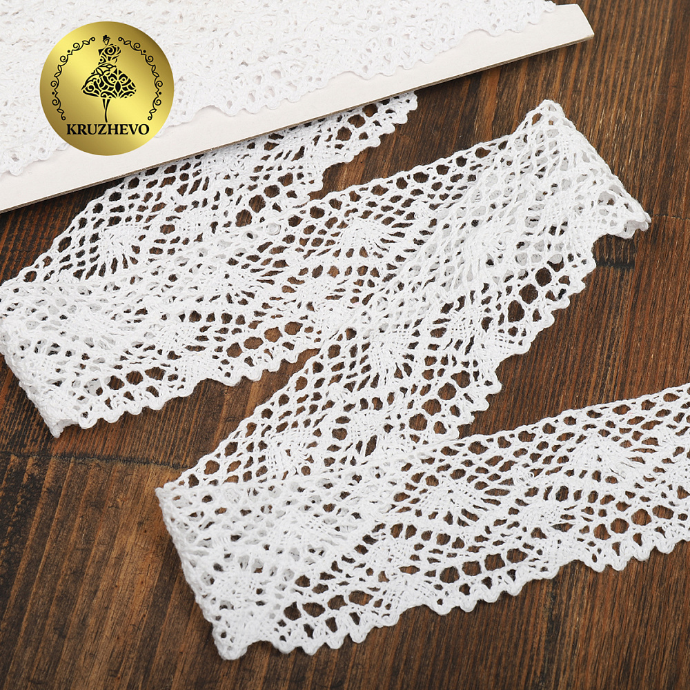 Кружево вязаное (тесьма) 45 мм / 10 метров, 5235 цв.01 теплый белый, Kruzhevo