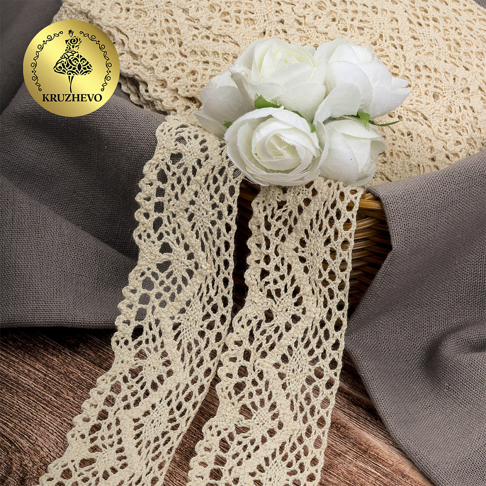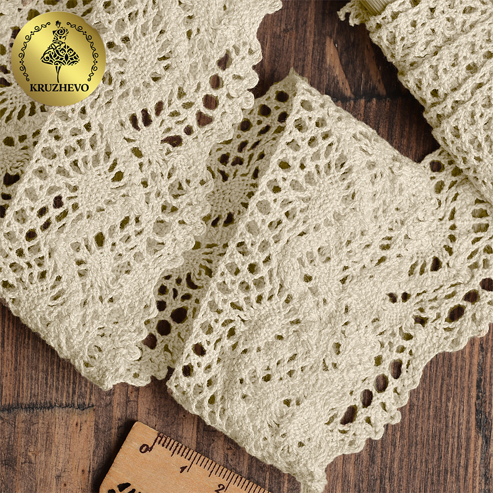 Кружево вязаное (тесьма) 45 мм / 10 метров, 5235 цв.35 кремовый, 10 м, Kruzhevo