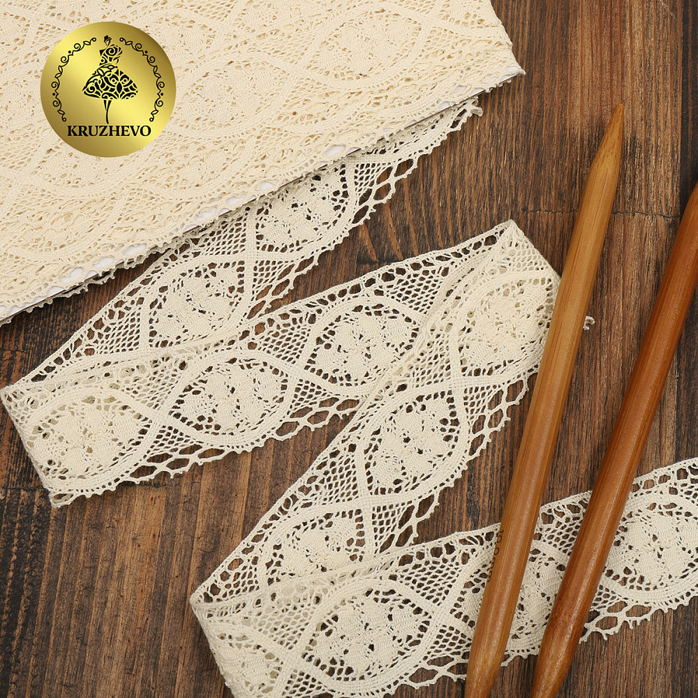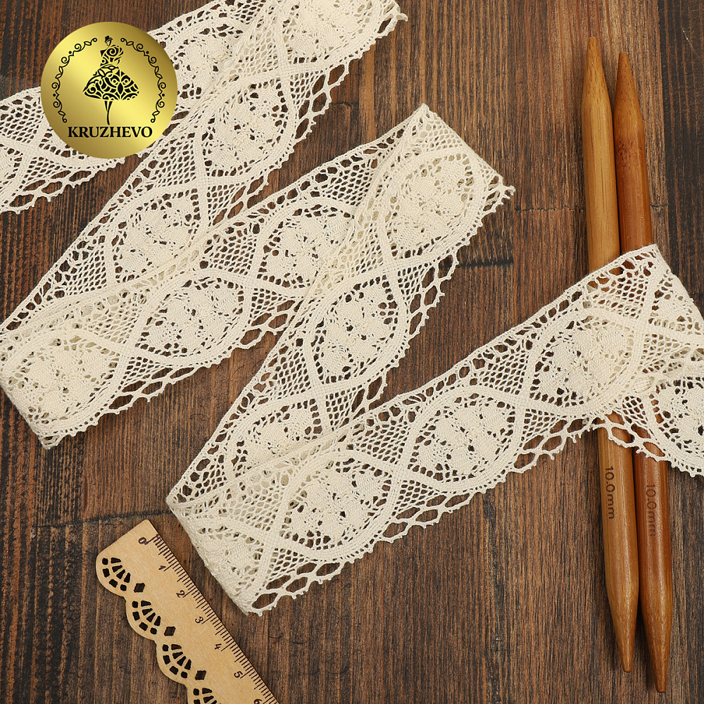 Кружево вязаное (тесьма) 45 мм / 10м, D1004 цв.02 молочный, Kruzhevo