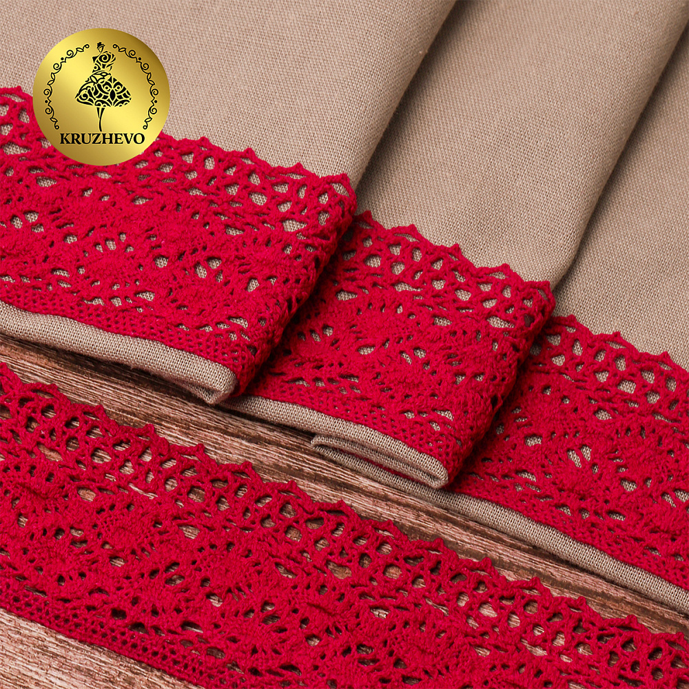 Вязаное кружево из хлопковых нитей с разнообразными рисунками. Богатая цветовая гамма и различная ширина кружева. Широкая сфера использования – от обычного пошива одежды до создания аксессуаров.