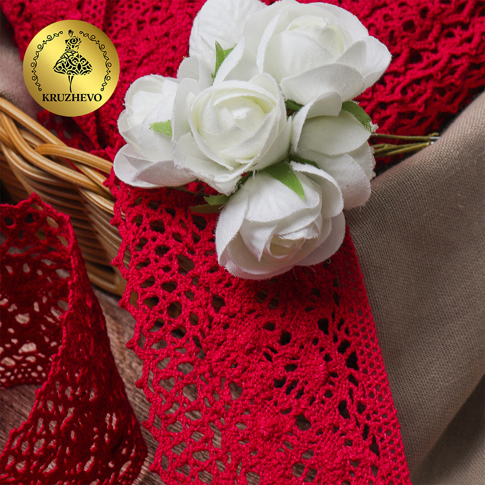 Кружево вязаное (тесьма) 50 мм / 10м, 6368 цв.26 бордовый, Kruzhevo