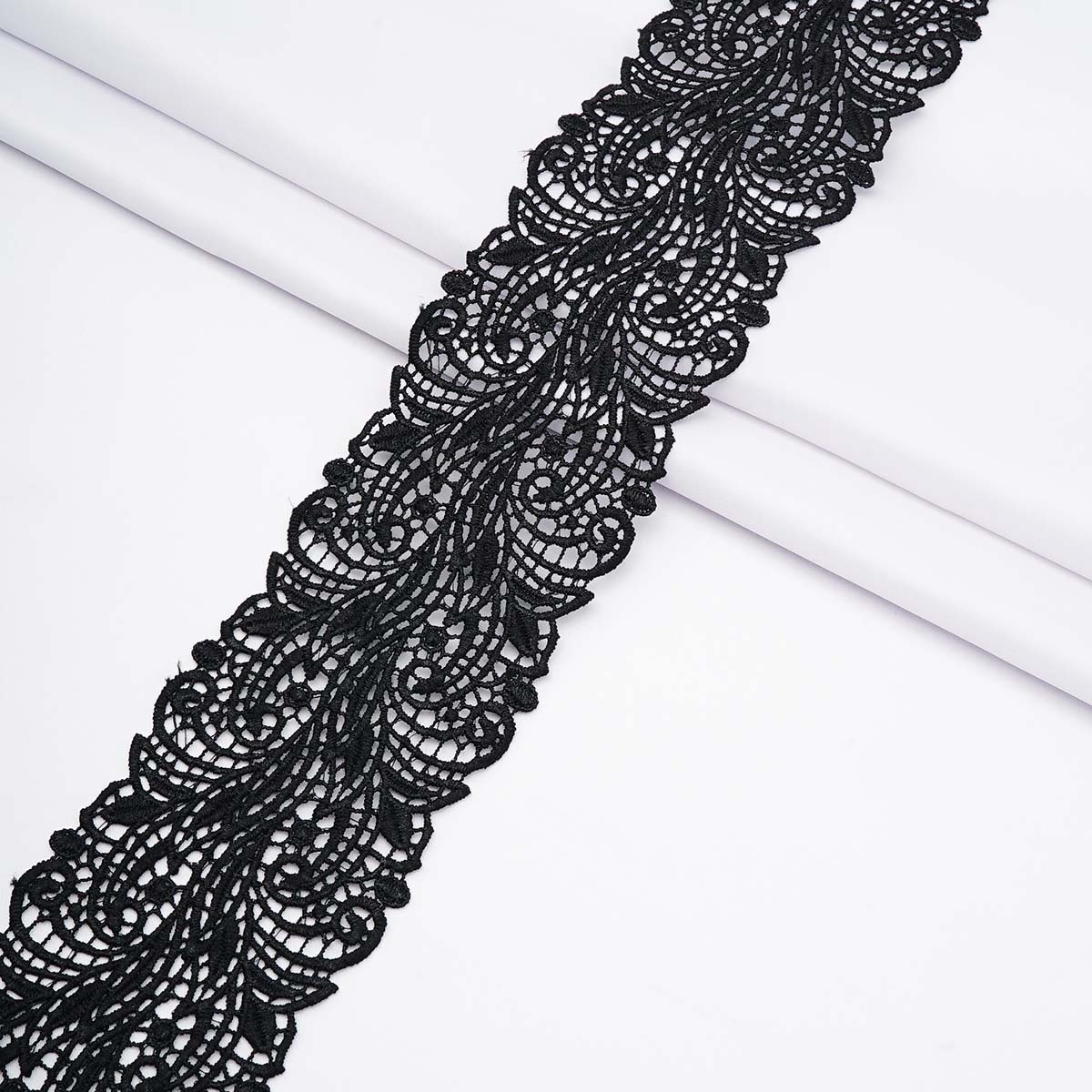 Кружево вязаное (тесьма) 65 мм / 9.14 метров, черный, 1413