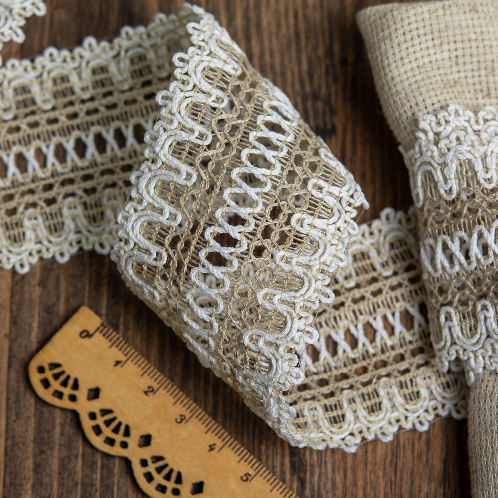 Кружево вязаное (тесьма) 57 мм / 10 метров, 6657/10Т цв.201 лен с белым, Kruzhevo