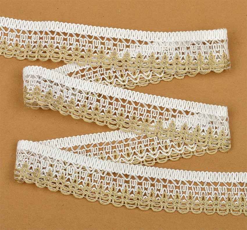 Кружево вязаное (тесьма) 20 мм / 10 метров, 6995, цв.127 белый со льном