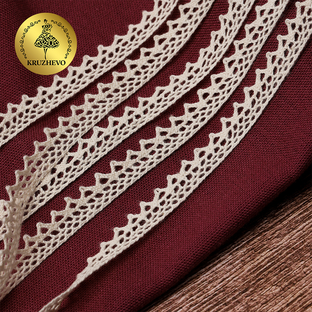 Вязаное хлопковое кружево с разнообразными рисунками. Богатая цветовая гамма и различная ширина кружева. Широкая сфера использования - от обычного пошива одежды до создания аксессуаров.