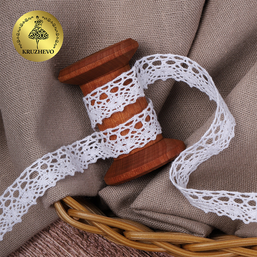 Кружево вязаное (тесьма) 13 мм / 10 метров, Тонкая нить, цв.02 белый, Kruzhevo