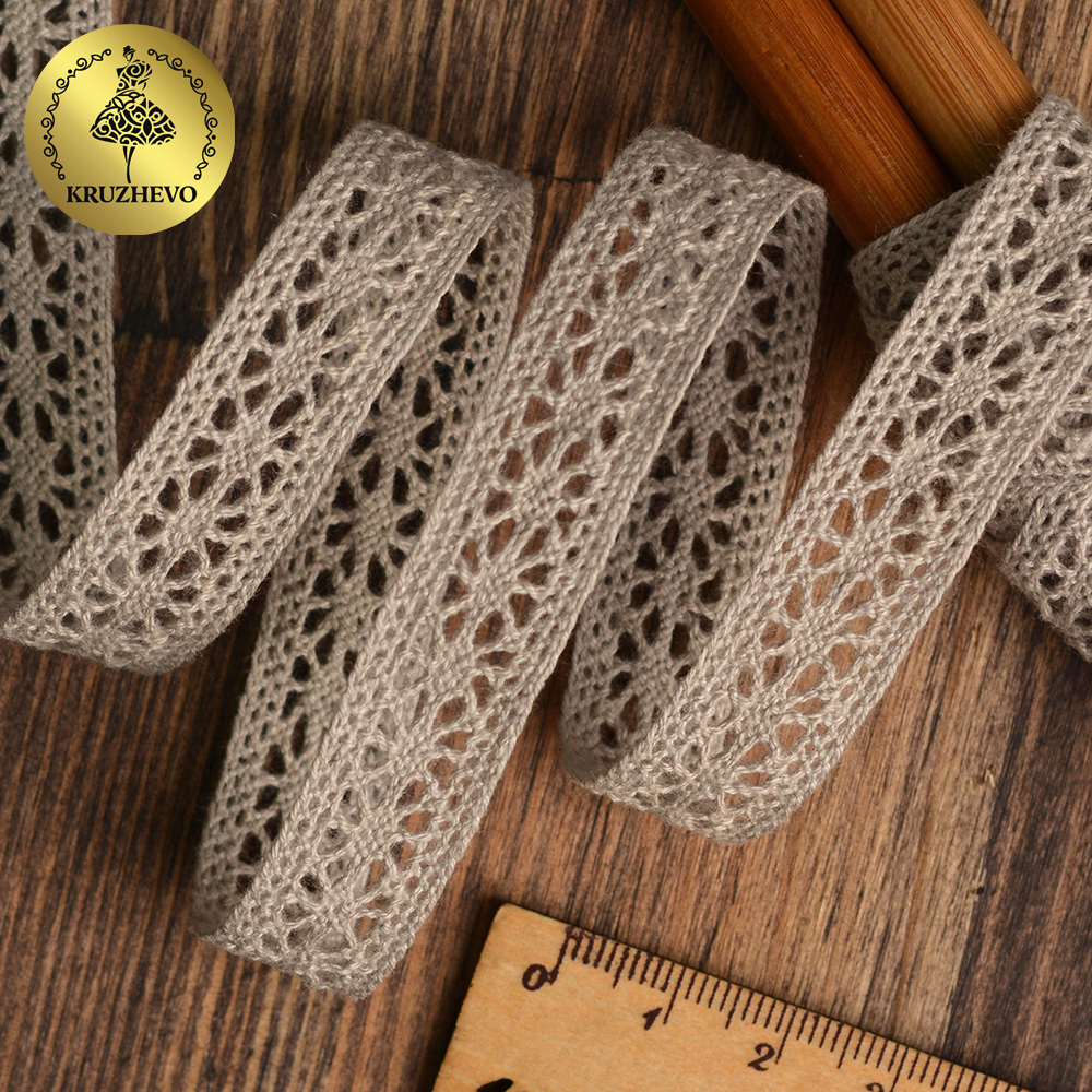 Кружево вязаное (тесьма) 15 мм / 10 метров, диз. 293, цв.22 серый лен, Kruzhevo