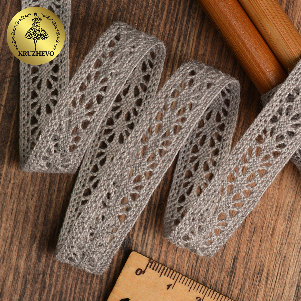 Кружево вязаное (тесьма) 15 мм / 10 метров, цв.25 св.серый, Kruzhevo