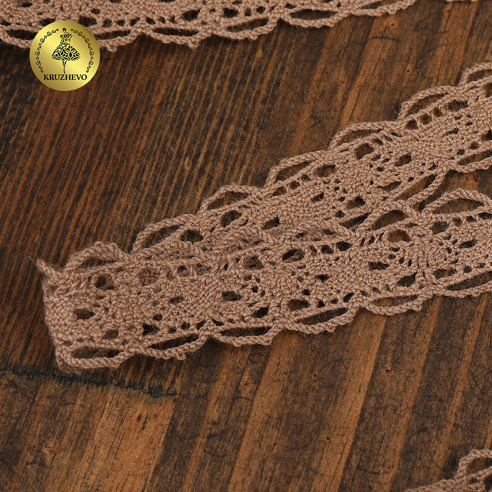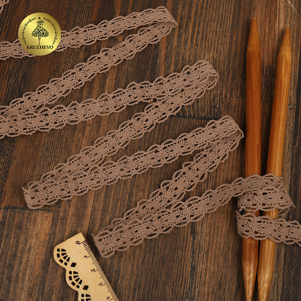 Кружево вязаное (тесьма) 15 мм / 10 метров, D1010, тонкая нить, цв.F293 св.коричневый, Kruzhevo