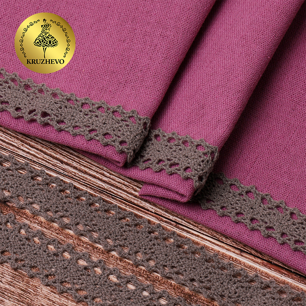 Вязаное кружево из хлопковых нитей с разнообразными рисунками. Богатая цветовая гамма и различная ширина кружева. Широкая сфера использования - от обычного пошива одежды до создания аксессуаров.
