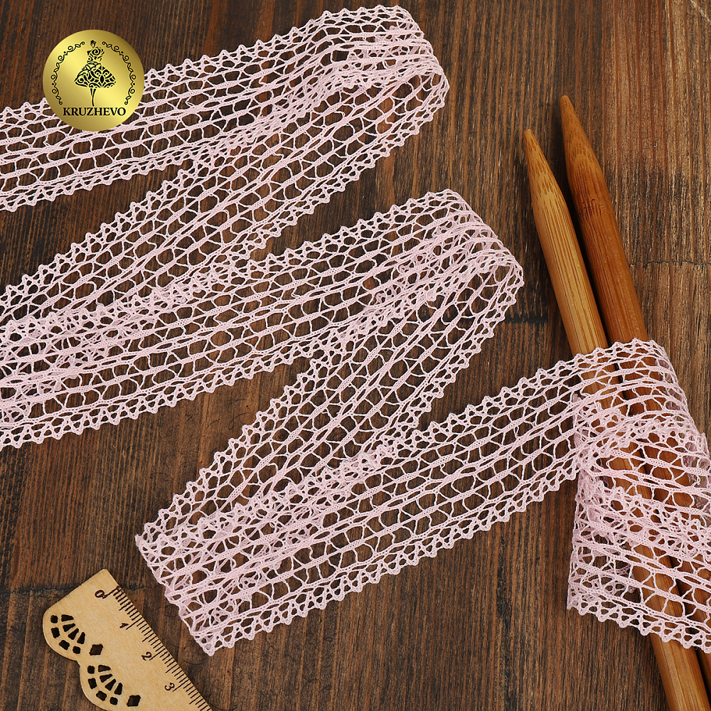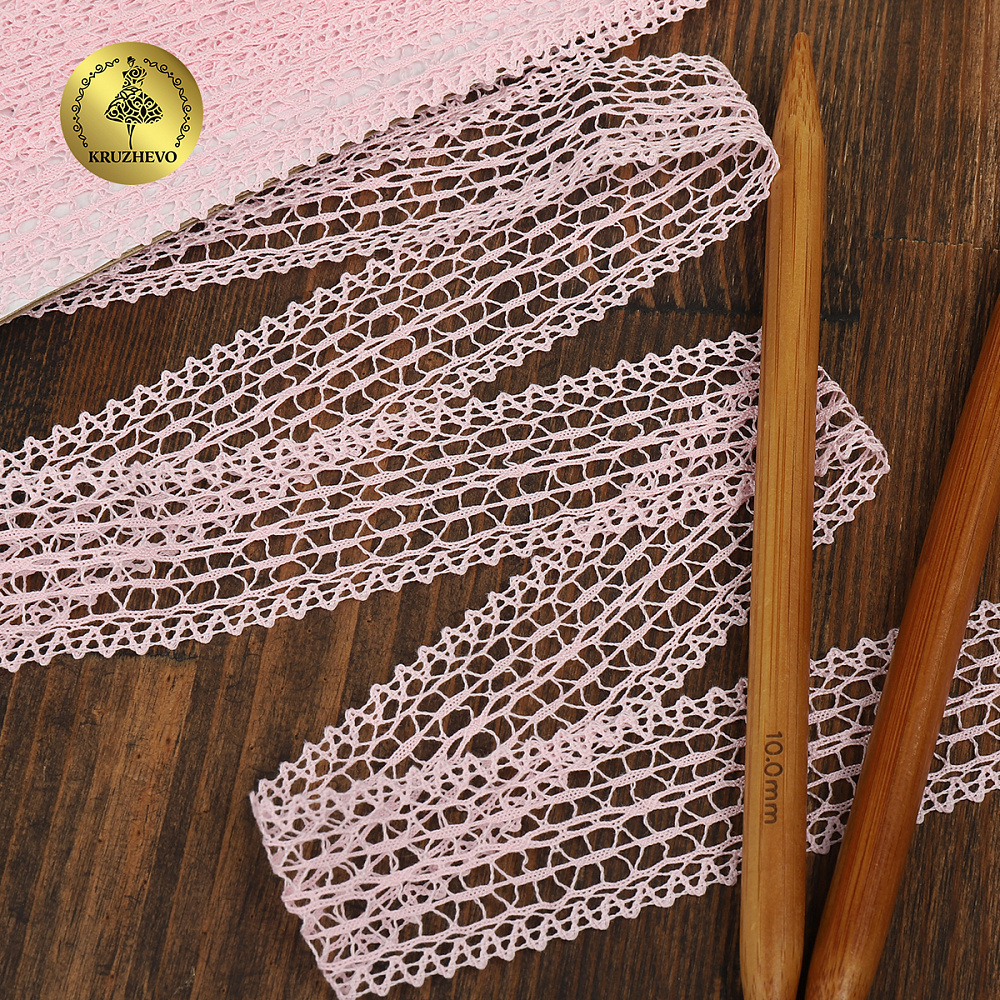 Кружево вязаное (тесьма) 25 мм / 10 метров, D1002, тонкая нить, цв.F133 розовый, Kruzhevo