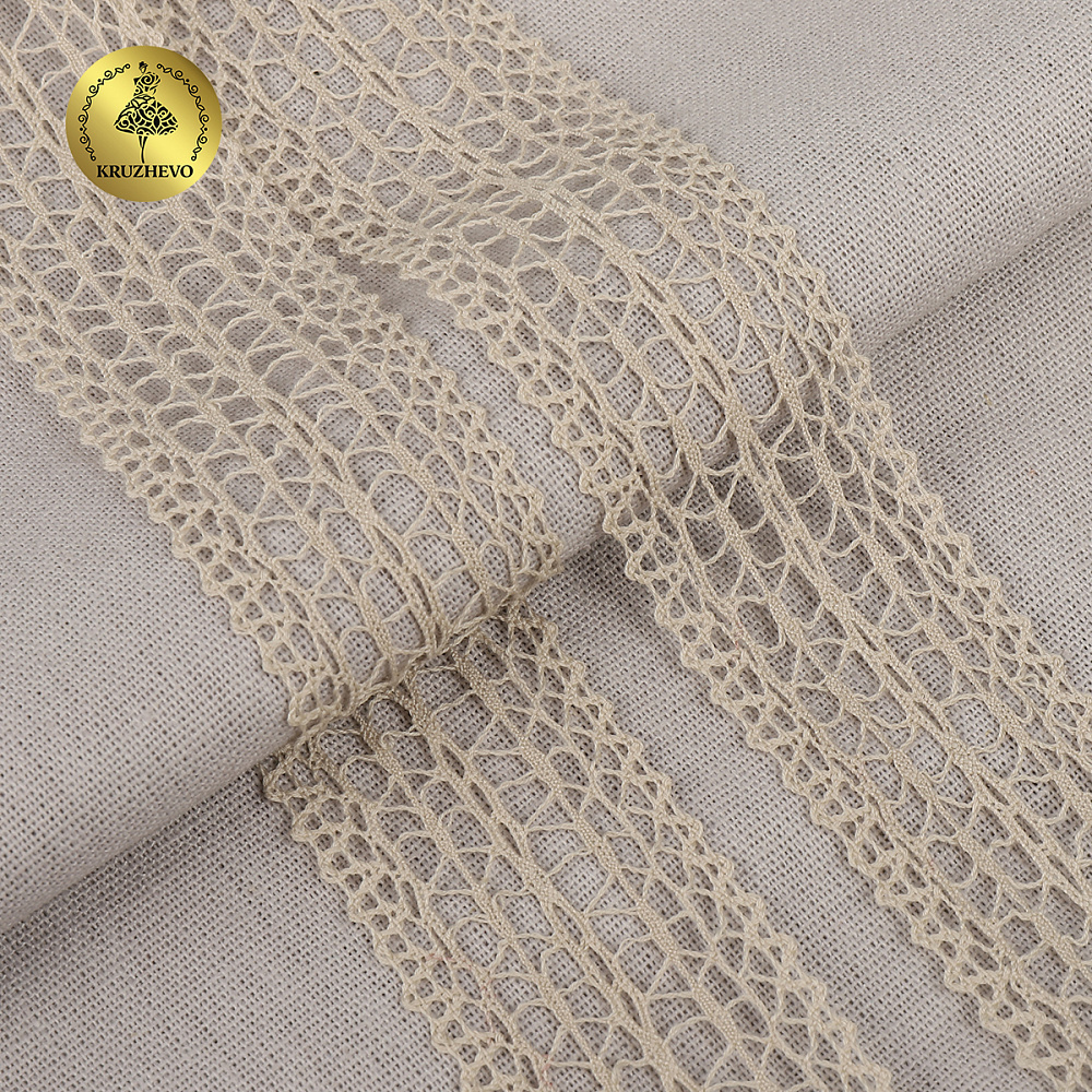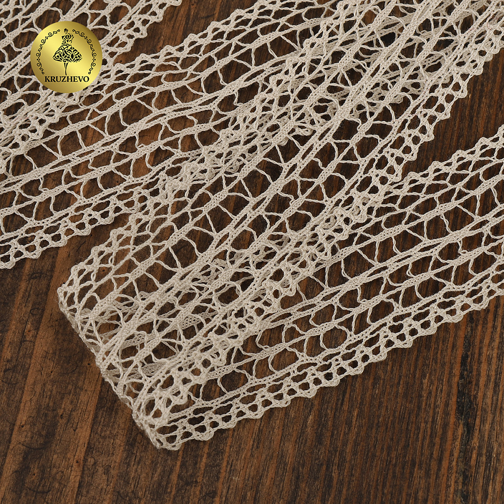 Кружево вязаное (тесьма) 25 мм / 10 метров, D1002, тонкая нить, цв.F307 льняной, Kruzhevo
