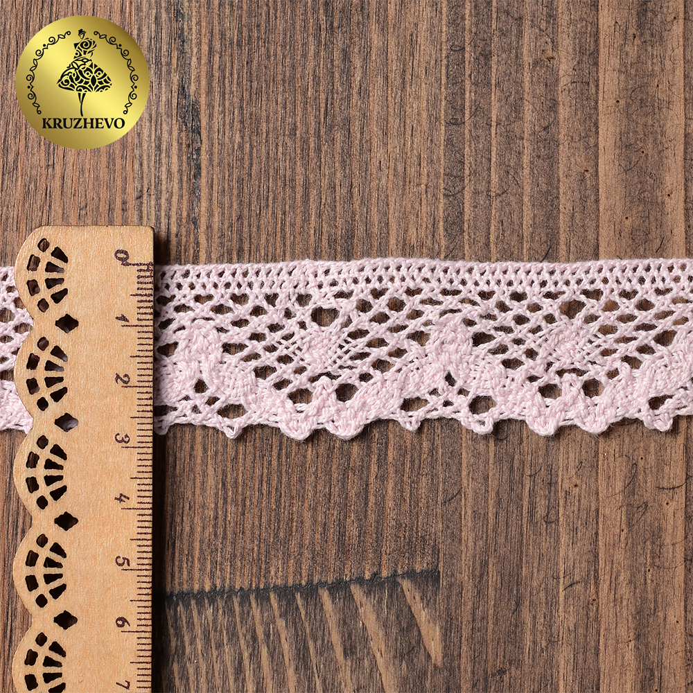 Кружево вязаное (тесьма) 30 мм / 10 метров, диз. 298, цв.20 бл.розовый, Kruzhevo