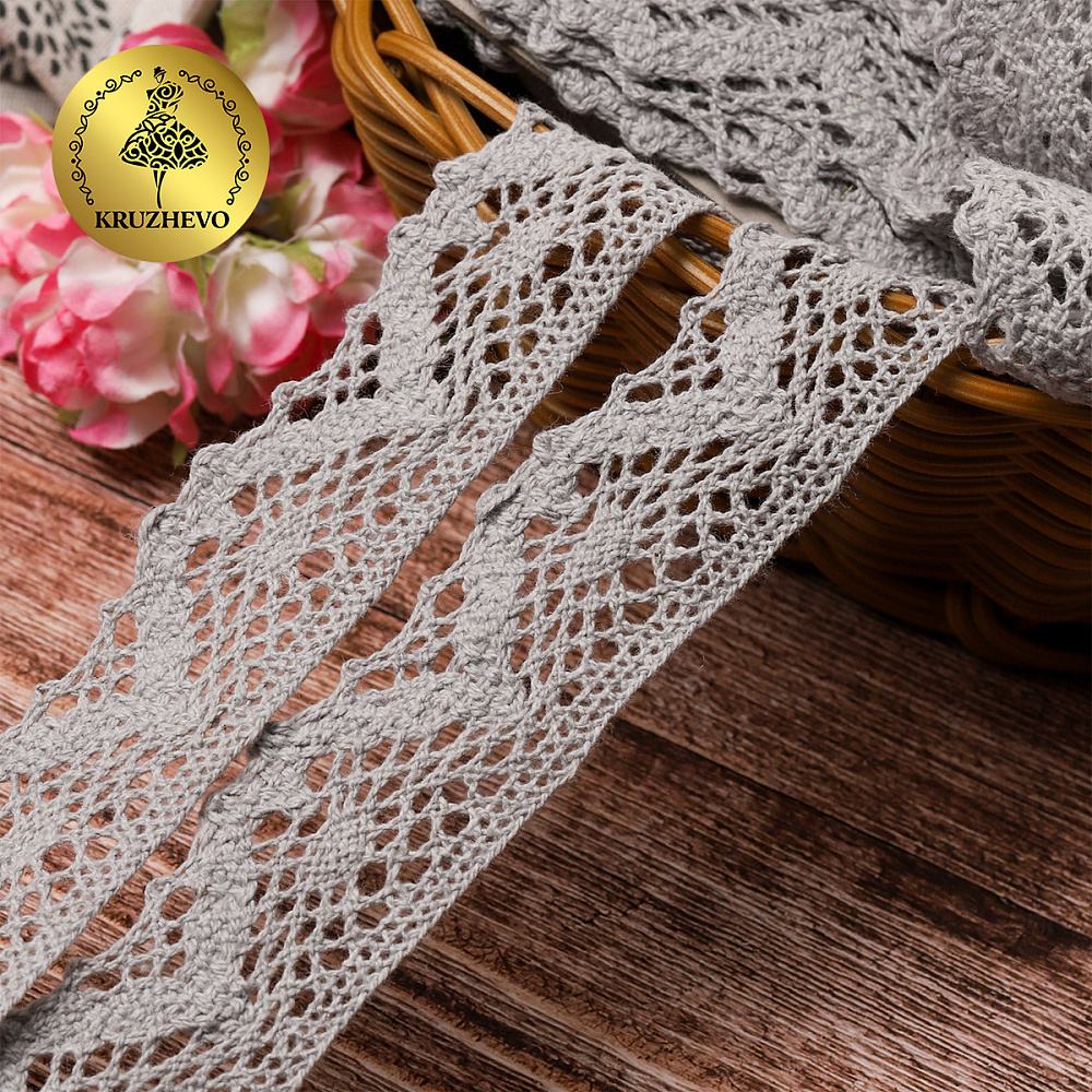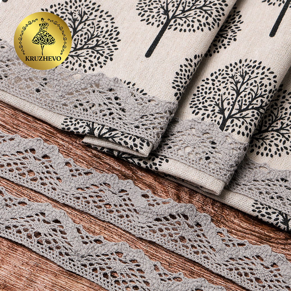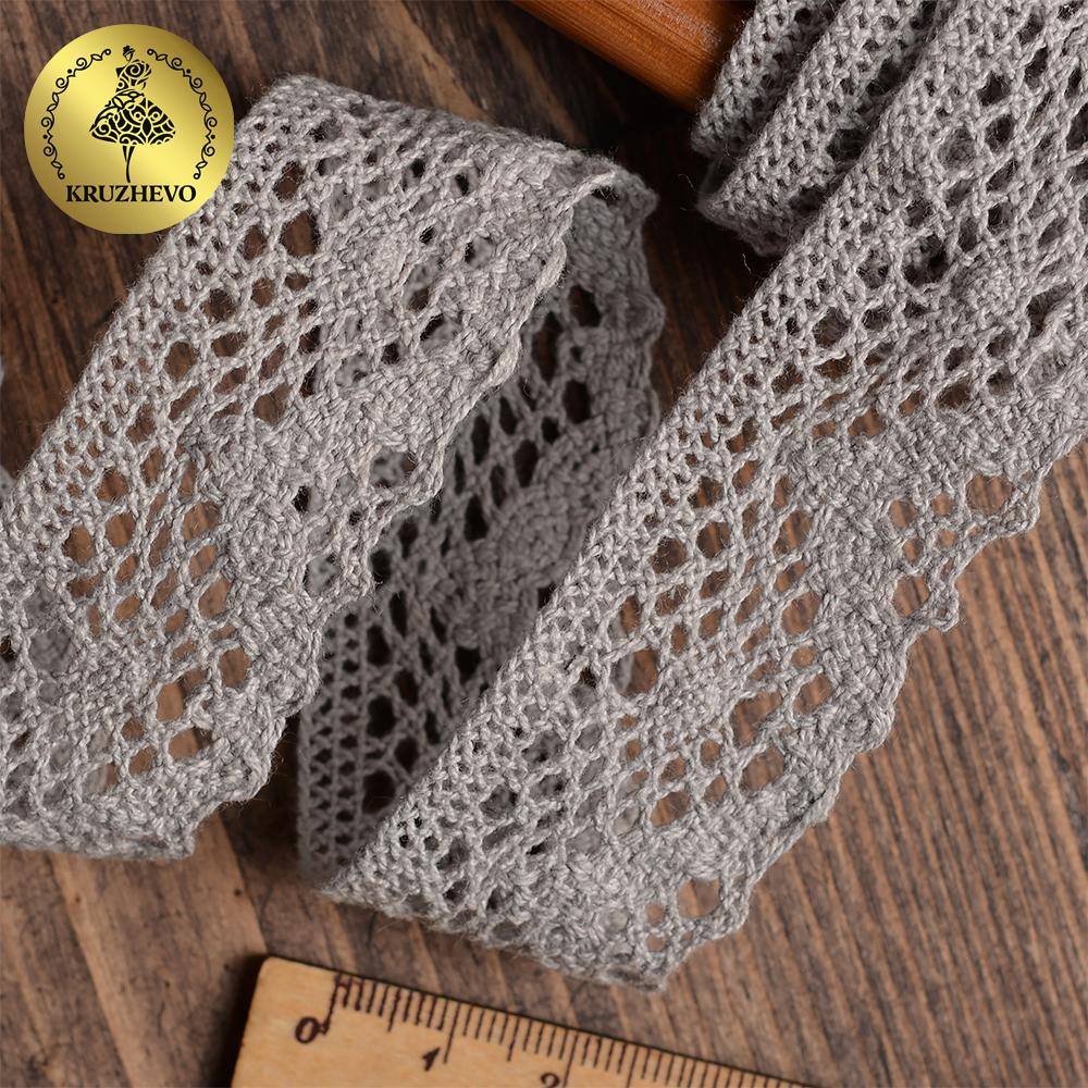 Кружево вязаное (тесьма) 30 мм / 10 метров, цв.25 св.серый, Kruzhevo