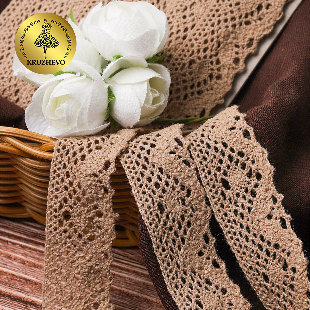 Кружево вязаное (тесьма) 30 мм / 10 метров, диз. 298, цв.30 капучино, Kruzhevo