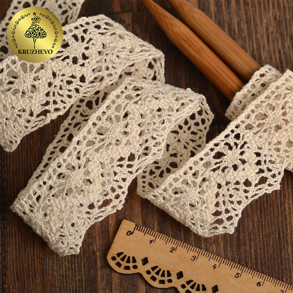 Красивое вязаное кружево из хлопковых нитей очень качественное, мягкое, приятное на ощупь. Украсит любое изделие, сделав его изысканным, утонченным. Широкая сфера использования - от обычного пошива одежды до создания аксессуаров.