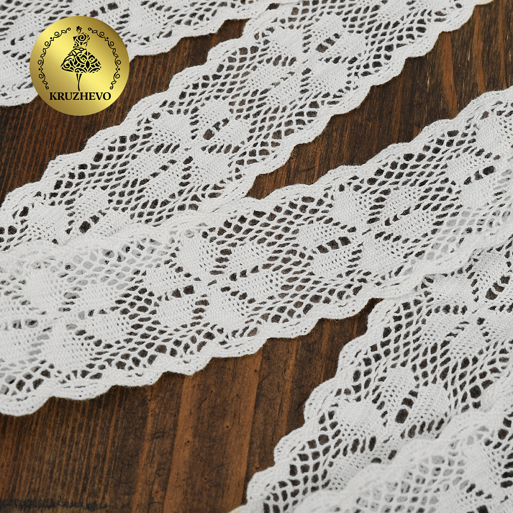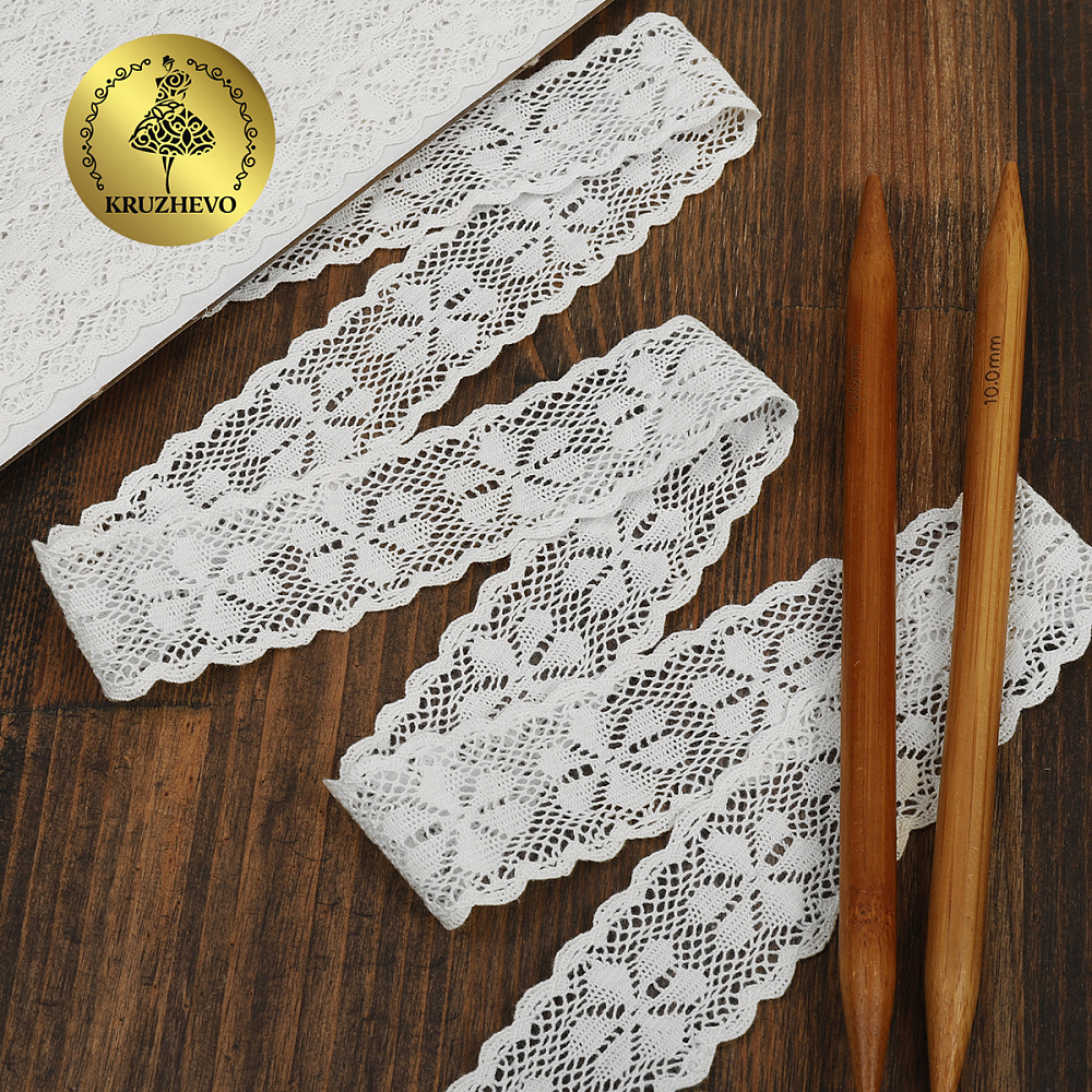 Кружево вязаное (тесьма) 35 мм / 10 метров, TBY.2444 цв.белый, Kruzhevo