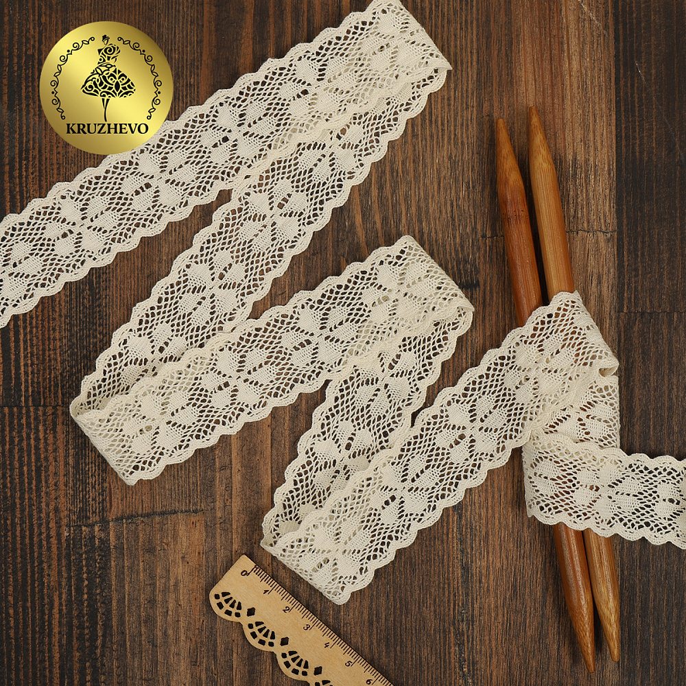 Кружево вязаное (тесьма) 35 мм / 10 метров, TBY.2444 цв.натуральный, Kruzhevo