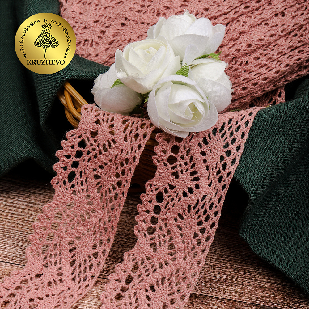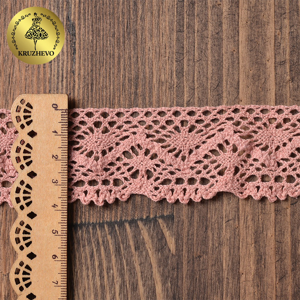 Кружево вязаное (тесьма) 45 мм / 10 метров, диз. 300, цв.32 розовый, Kruzhevo
