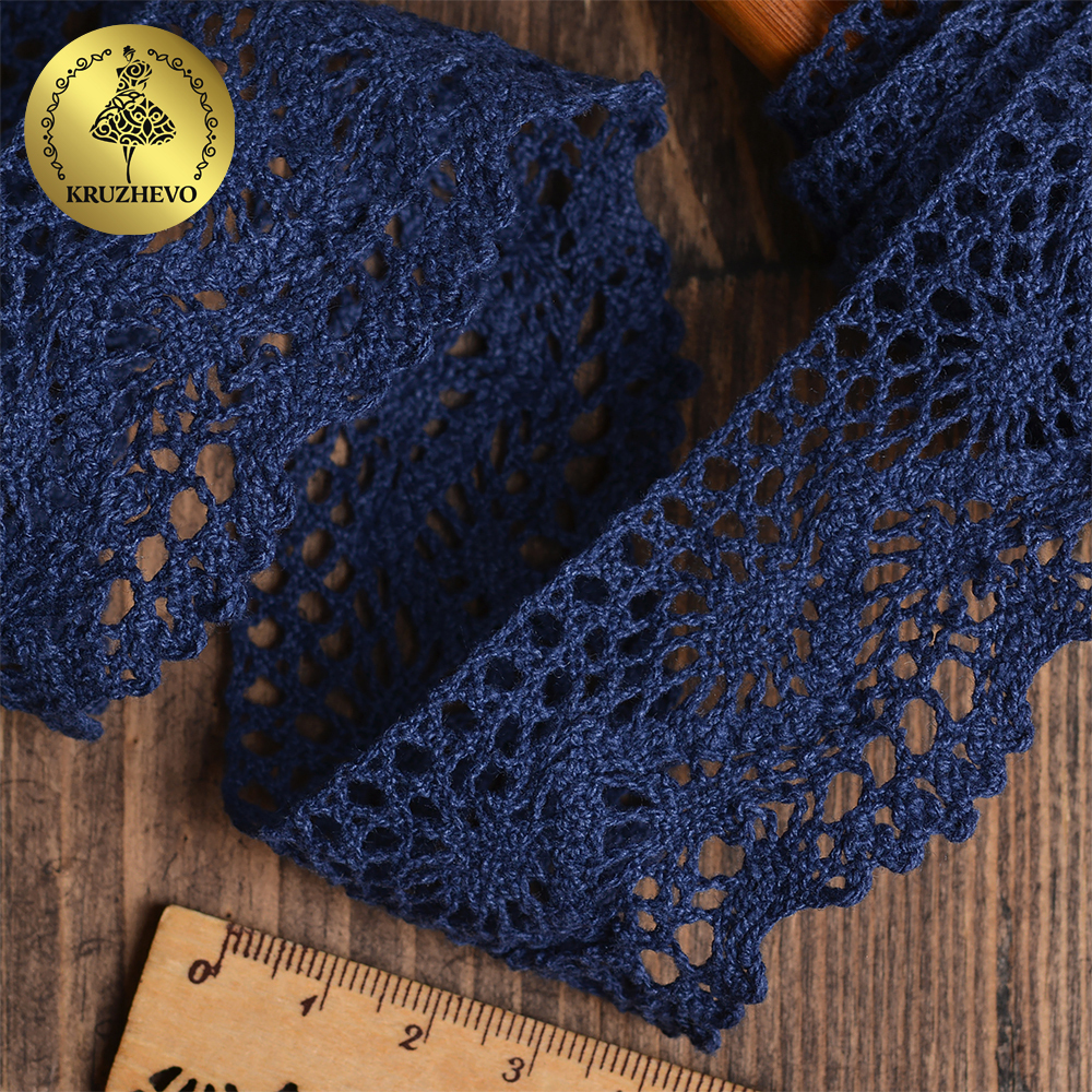 Кружево вязаное (тесьма) 45 мм / 10 метров, TBY-5235, цв.29 т.синий, Kruzhevo