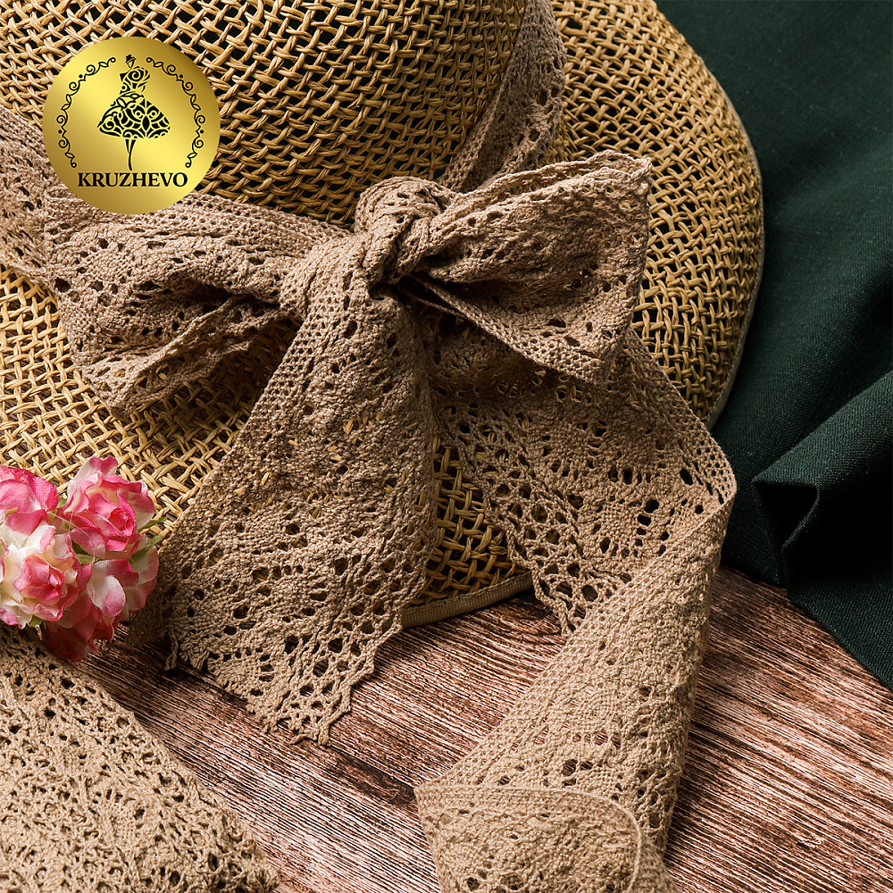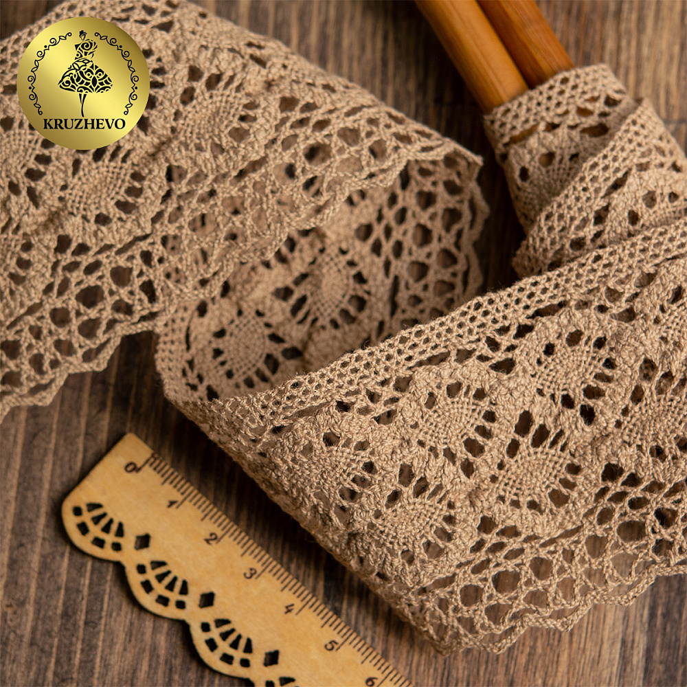 Кружево вязаное (тесьма) 50 мм / 10 метров, цв.30 капучино, Kruzhevo