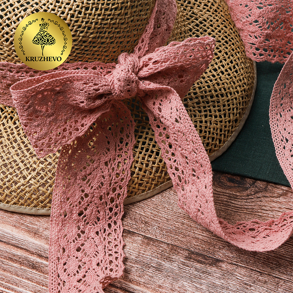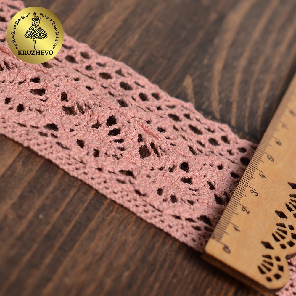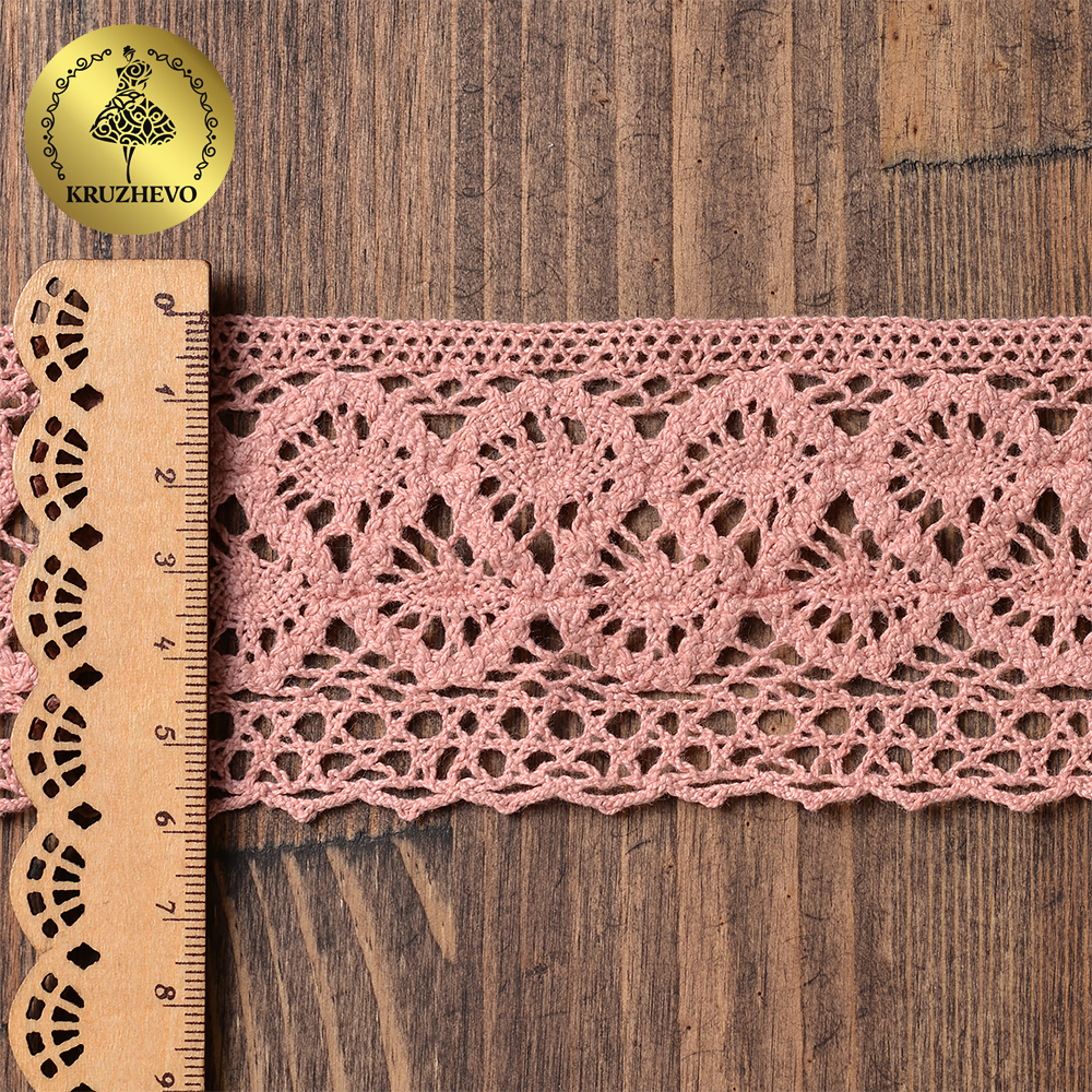 Кружево вязаное (тесьма) 50 мм / 10 метров, цв.32 розовый, Kruzhevo