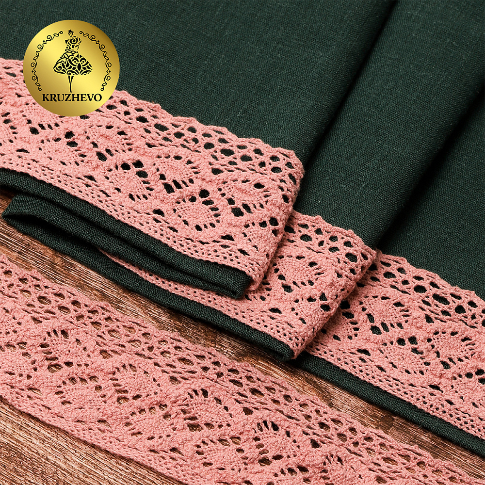 Красивое вязаное кружево с разнообразными рисунками. Богатая цветовая гамма и различная ширина кружева. Широкая сфера использования - от обычного пошива одежды до создания аксессуаров.
