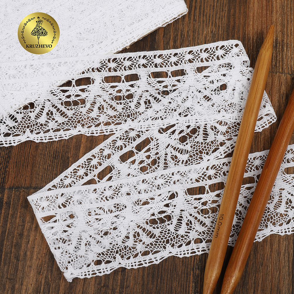 Кружево вязаное (тесьма) 60 мм / 10 метров, D1011, тонкая нить, цв.01 белый, Kruzhevo